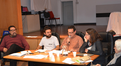 La primera mesa se tituló “Poder. Imaginación. Resistencias”. La coordinación estuvo a cargo de Prof. Adj. Anabel Beniscelli y la integraron Raquel Lubartowski, Ernesto Naischtat, Joaquín Rodríguez Nebot, María Urruzola y Camilo Laner.