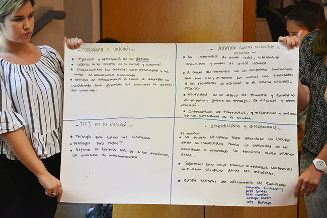 También se destaca la participación de las docentes extranjeras invitadas; la Prof. Sandra Katz (Universidad Nacional de La Plata, Argentina), quien participó de la Actividad de apertura titulada “Los Desafíos de la inclusión”; y las docentes de Universidad Estadual Paulista, Campus de Marília (Brasil), Prof. Sandra Eli Martins y Prof. Rosimar Bortolini, con sus paneles “Inclusión en Enseñanza Superior” y “El sistema educativo inclusivo y las Adecuaciones curriculares”, respectivamente.