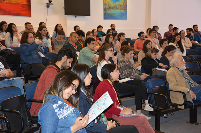 La Mag. Esther Angeriz analizó los procesos de apropiación de las TIC en nuestro país vinculadas con el Plan Ceibal a través de resultados de investigaciones que evidencian distintas etapas en este proceso, particularmente las transformaciones del vínculo pedagógico y las competencias que pueden desarrollar niños/as y jóvenes a través de actividades mediadas por recursos tecnológicos programables.