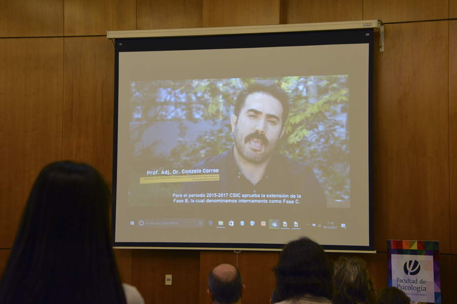 La actividad tuvo lugar el martes 05 de diciembre de 2017 en el Aula Magna “Juan Carlos Carrasco” de la Facultad de Psicología de la Universidad de la República. En ella expusieron la Dra. Cecilia Fernández, Pro Rectora de Investigación, Prof. Dr. Luis Leopold, Decano de Facultad de Psicología durante parte del proceso en el que se desarrolló el Programa, y Prof. Agdo. Mag. Fernando Berriel y Prof. Dra. Alejandra López coordinadores de la ejecución del programa en Facultad de Psicología.