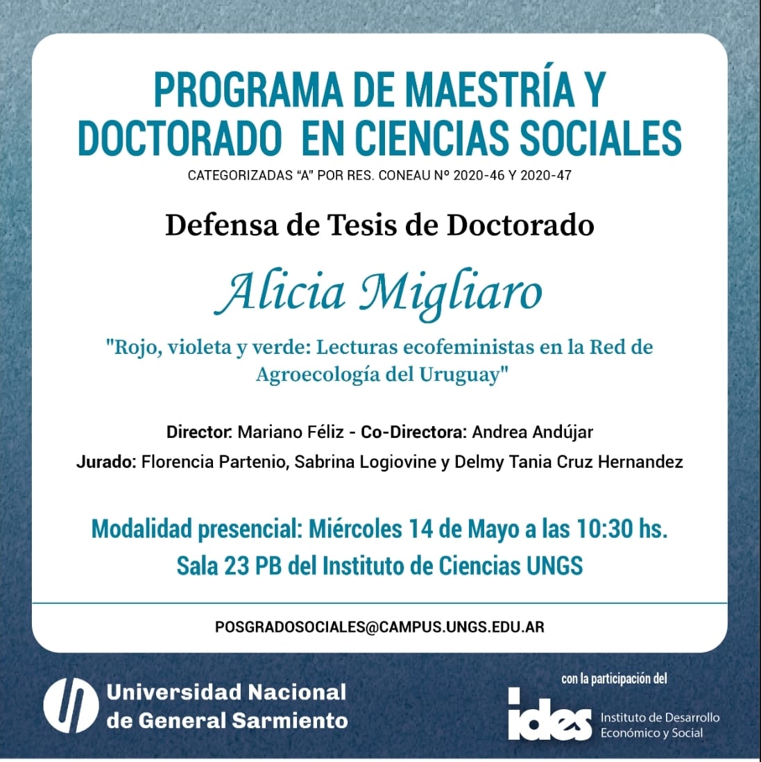 El 14 de mayo de 2025, la investigadora del Centro de Experimentación e Innovación Social (CEIS) y docente del Instituto de Psicología Social, Alicia Migliaro González, obtuvo el título de doctora en Ciencias Sociales por la Universidad Nacional de General Sarmiento (UNGS) de Argentina, en articulación con el Instituto de Desarrollo Económico y Social (IDES).
