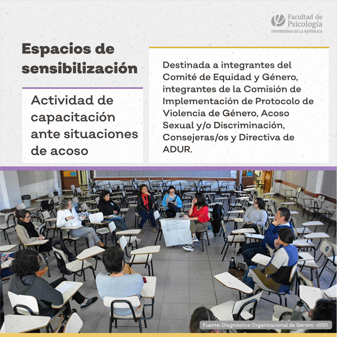 El Comité de Equidad y Género, órgano asesor cogobernado de la Facultad de Psicología de la Universidad de la República (Udelar), elaboró entre los meses de mayo a noviembre del año 2021 el proceso de actualización del Diagnóstico organizacional con perspectiva de género, aprobado por el Consejo de Facultad el día 7 de marzo de 2022.