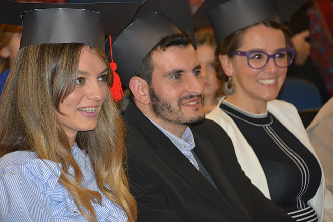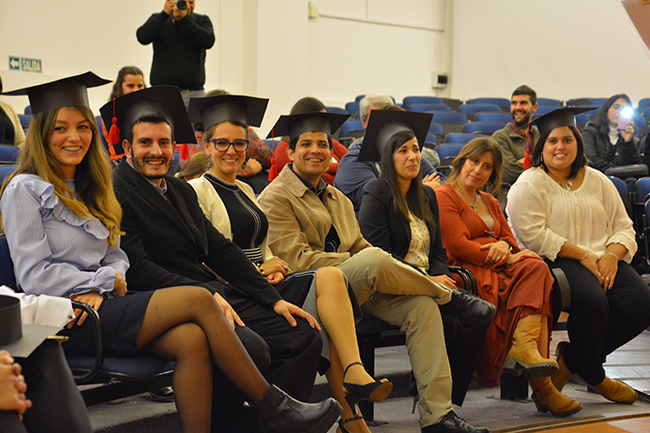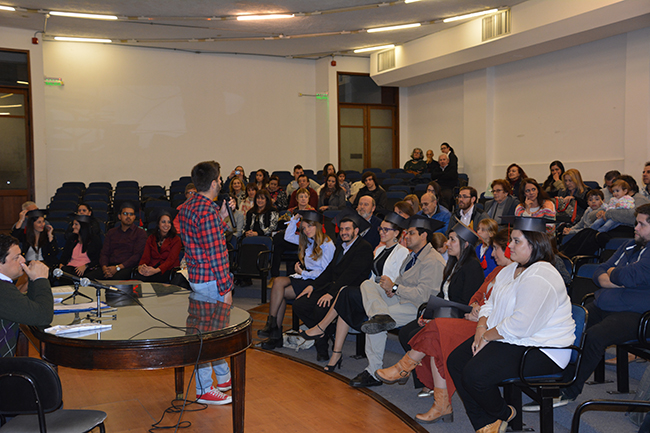 La ceremonia estuvo a cargo del Asist. Bruno Cancio, quien luego de dar la bienvenida a todos dio lugar para una divertida presentación de stand up a cargo de dos comediantes. Con humor recordaron el esfuerzo que implica el camino de los universitarios, la importancia del apoyo de la familia, y por supuesto, no faltaron los chistes sobre los psicólogos y su labor.
