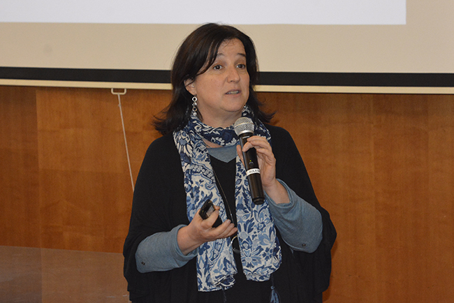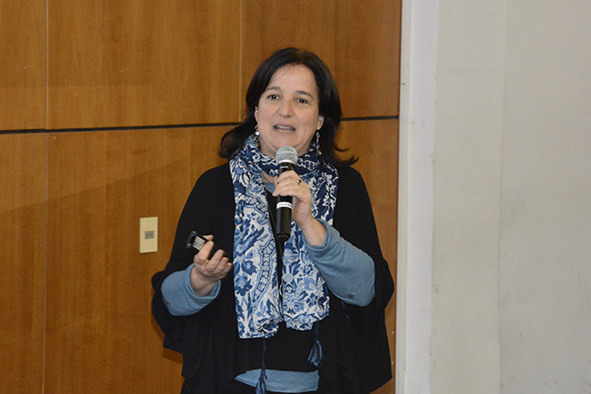En la introducción a su conferencia, la Dra. Diuk anunció el abordaje a la psicología cognitiva como una disciplina viva, con aportes a realizar en la vida de las personas. Desde dicha perspectiva, expuso sobre dos aspectos de la materia: uno de carácter interno, en relación al proceso de desarrollo del concepto de “conciencia fonológica” por parte de la comunidad científica; otro referido a la disciplina como una herramienta para contribuir en los procesos de aprendizaje de la lectura en la etapa infantil. Este último aspecto, nutrido de los aportes de su trabajo como directora de la propuesta DALE! (Derecho a aprender a leer y escribir), que es un programa que se desarrolla en Argentina como una herramienta para enseñar a leer y a escribir a niños y niñas en contextos de pobreza que no están avanzando al ritmo de sus pares.