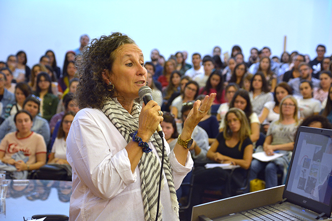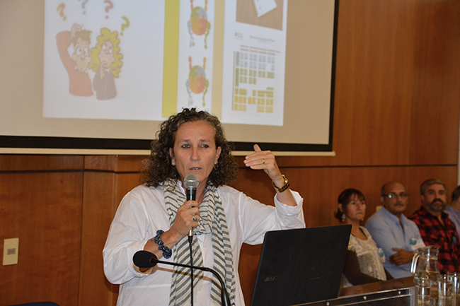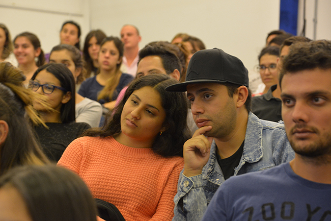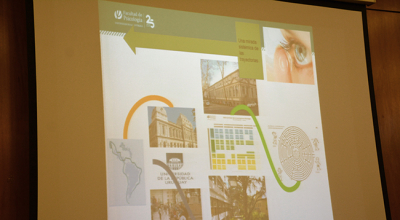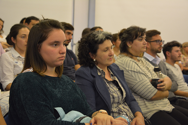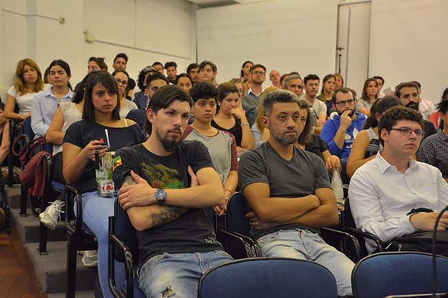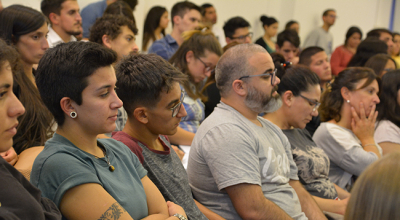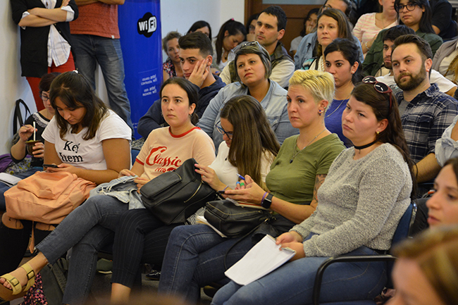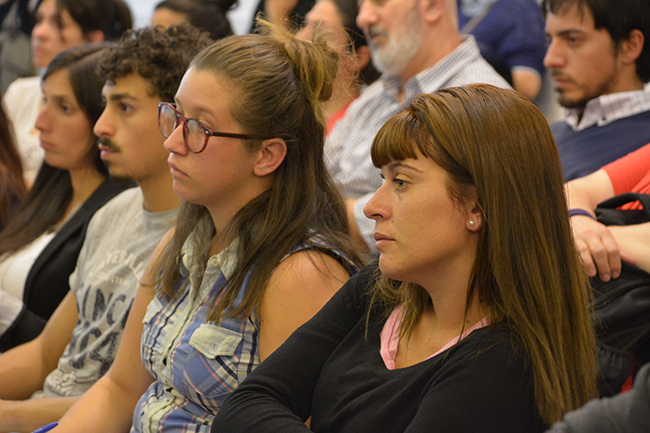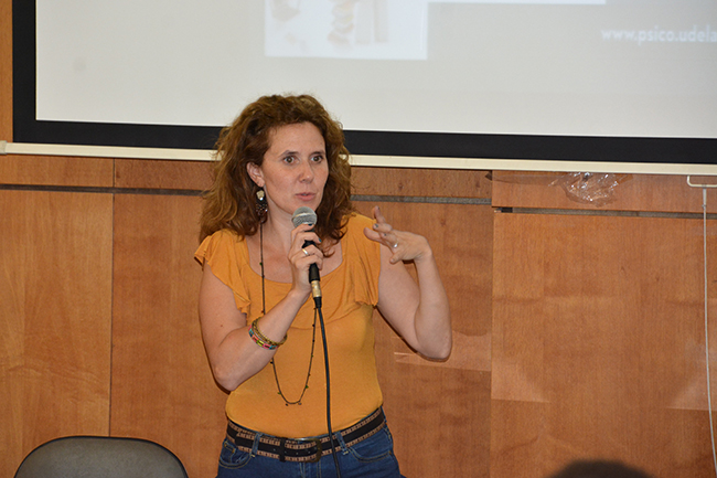 La temática de la conferencia se centró en el recorrido de las y los estudiantes por la Educación Superior en la Universidad de la República, en esta casa de estudios, y en los procesos y herramientas disponibles para la construcción de las trayectorias estudiantiles de cada uno/a. La docente introdujo los procesos referidos al ingreso a la carrera y explicó que el objeto de estudio de su disertación serían las trayectorias estudiantiles desde un enfoque sistémico.