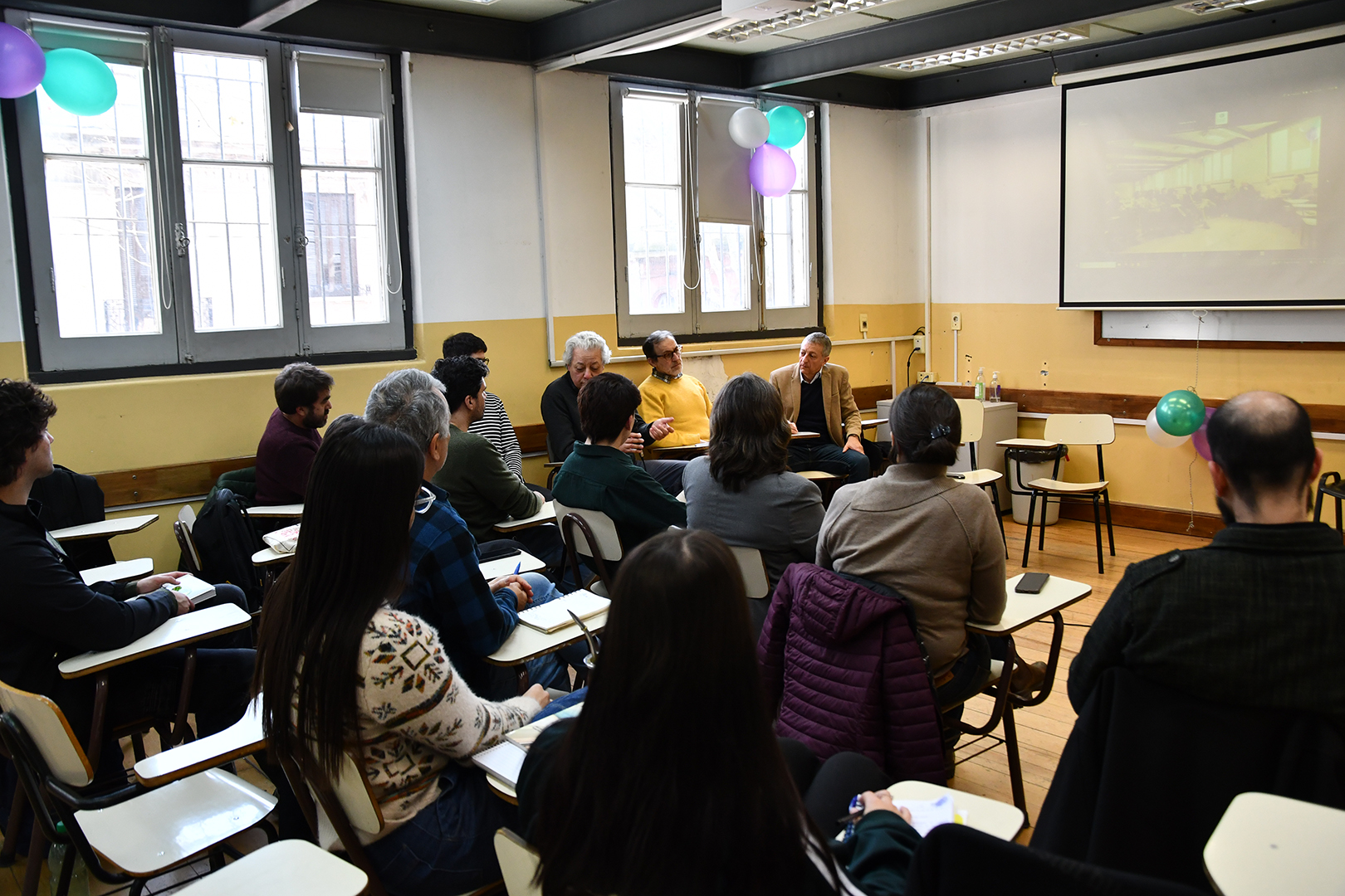 El salón Delmira Agustini de la Facultad de Psicología de la Universidad de la República (Udelar) fue el escenario donde, el pasado miércoles 4 de septiembre, se realizó el conversatorio de apertura al ciclo de celebraciones de 30 años del programa Psicología de las Organizaciones y el Trabajo (POT), del Instituto de Psicología Social.