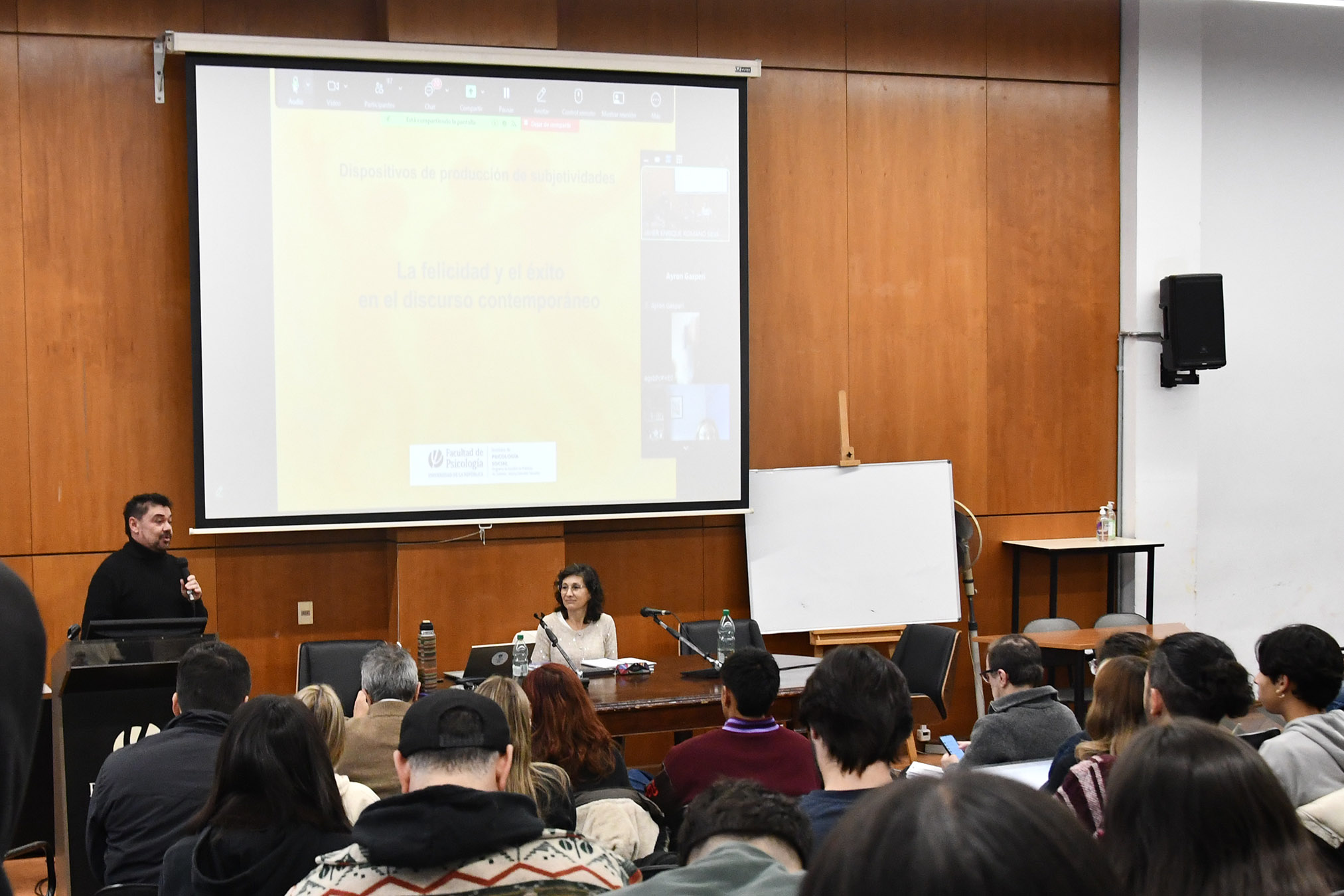 La conferencia magistral "Dispositivos de producción de subjetividades: la felicidad y el éxito en el discurso contemporáneo" tuvo lugar el pasado 28 de mayo en el Aula Magna “Juan Carlos Carrasco” de la Facultad de Psicología de la Universidad de la República (Udelar), y fue transmitida en vivo por el canal de YouTube de la institución.