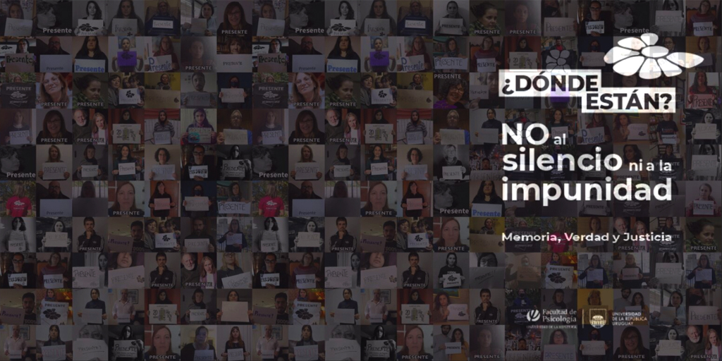 La Facultad de Psicología acompaña a la organización Madres y Familiares de Detenidos Desaparecidos, que bajo la consigna ¿Dónde están? “No al silencio ni a la impunidad. Memoria, Verdad y Justicia” llama nuevamente a la participación de la población en una marcha virtual el 20 de mayo desde las 19 hs en www.marchadelsilencio.uy.