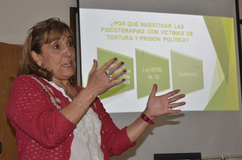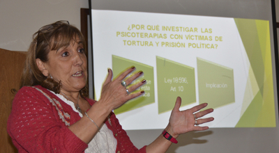 En su Tesis, describe las características del trabajo psicoterapéutico realizado por profesionales de la salud mental para abordar estas consultas, que aún persisten debido a los efectos causados por las torturas psicológicas y físicas vividas por ex prisioneras/os políticos. Indica que estas afectan no sólo a los sujetos, sino a sus familias y a la sociedad, de tal manera que exige consulta psicológica o psiquiátrica.
