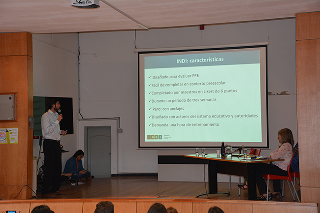 Alejandro Vásquez expuso sobre el "Inventario de Desarrollo infantil", instrumento que permite evaluar la preparación con la que cuentan niños/as de entre 3 y 5 años para la escolarización en Educación Inicial (o preescolar) en Uruguay. Particularmente, ofreció algunos lineamientos teóricos sobre los que prestadores de servicios en primera infancia podrían organizar la articulación entre los resultados obtenidos y las formas de intervención.