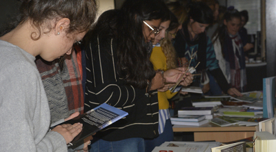 Quienes estuvieron presentes en la inauguración de la exposición pudieron elegir un libro de obsequio para llevar.