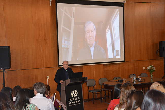 La Videoconferencia “El apego como andamio para el desarrollo”, a cargo del PhD. Alan Sroufe de la Universidad de Minnesota (EEUU), se realizó el 8 de noviembre en el Aula Magna de la Facultad de Psicología. Coordinó la actividad Dr. Mauricio Cortina (EEUU), quien introdujo el estudio de la Universidad Minnesota sobre niños, presentado por Alan Sroufe, como “la principal confirmación de muchos de los conceptos de John Bowlby y Mary Ainsworth sobre la importancia del vínculo de apego en el transcurso de la relación humana”.