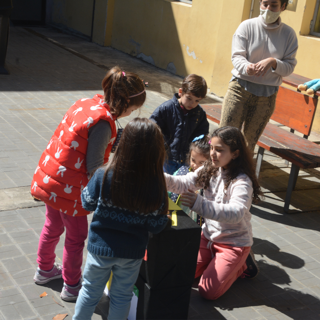 Desde el lunes 20 y hasta el jueves 23 de septiembre de 2021, en el horario de 10:00 a 16:00 hs., tiene lugar el Espacio de Cuidado y Recreación para hijos/as del personal TAS y docentes de la Facultad de Psicología. Hasta ahora, la instancia estuvo marcada por el reencuentro con varios/as niños y niñas que ya habían participado de ediciones anteriores. En el primer día de actividades el grupo decoró el salón con temática de la primavera y fabricaron títeres con papel maché. En el segundo día del Espacio surgió, a pedido de niños y niñas, la búsqueda del tesoro en el patio, juego del que ya habían disfrutado en otras ediciones.