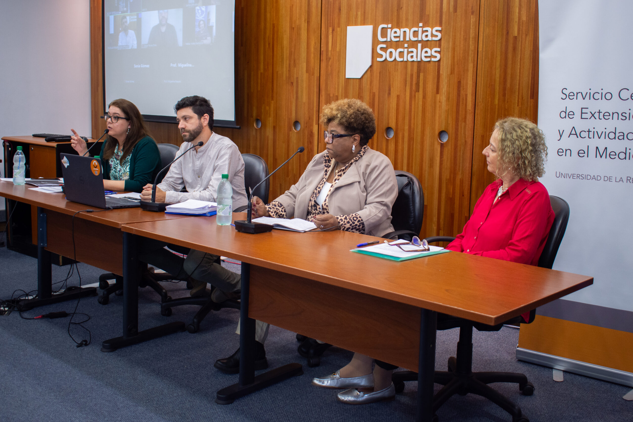 En la presentación, que se realizó el 3 de diciembre en la Facultad de Ciencias Sociales, participaron Verónica Villagra y Óscar Rorra, integrantes de Organizaciones Mundo Afro; Nicolás Robledo, del Servicio Central de Extensión y Actividades en el Medio (SCEAM) de la Universidad de la República (Udelar); Mónica Olaza y Natalia Stalla, de la Red de Estudios Afrouruguayos de la Udelar.
