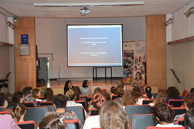 También planteó las siguientes interrogantes a debatir: ¿La persona se adapta al medio, o el medio se adecua para la persona? ¿El profesorado debe tener una formación especial, o debe estar preparado para atender la diversidad? Bagnato culminó su disertación con dos conceptos fundamentales que aporta la Convención de personas con discapacidad de la ONU, el de “diseño universal” de productos, entornos, programas y servicios que puedan utilizar todas las personas en la mayor medida posible, y “ajustes razonables”, es decir, modificaciones necesarias que no impongan una carga desproporcionada o indebida, cuando requieran un caso particular.