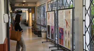 La muestra está ubicada en el corredor de planta baja del edificio central, sobre la calle Tristán Narvaja, frente al salón 1 y a la Bedelía.