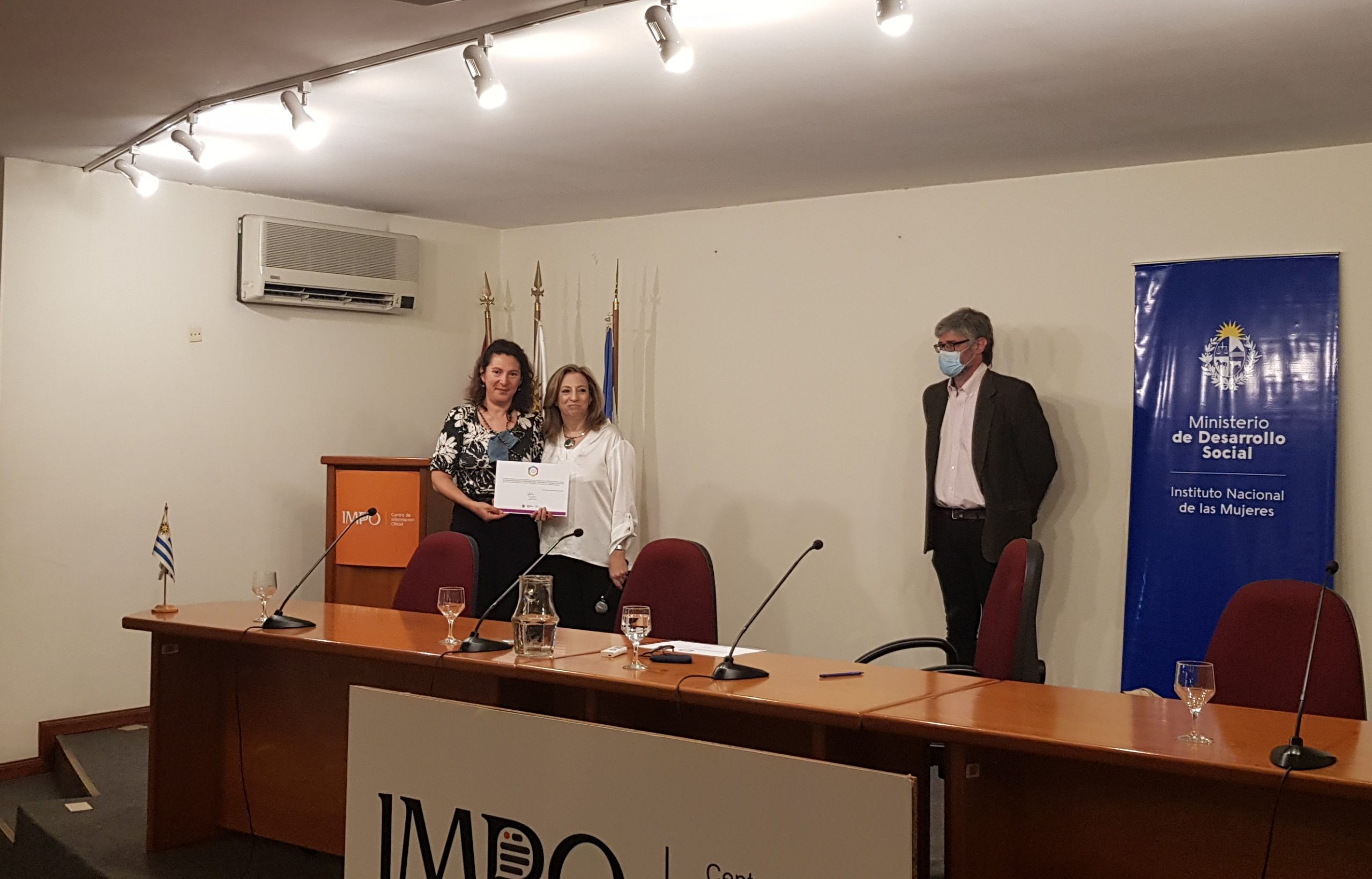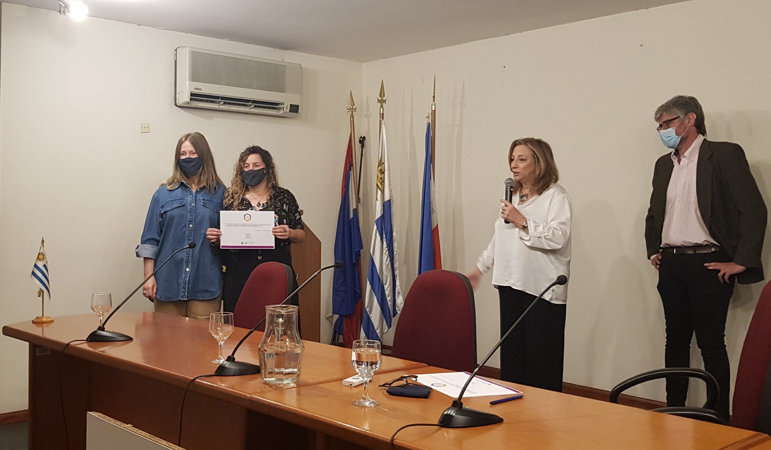 Por la Facultad de Información y Comunicación (FIC) recibió el reconocimiento Victoria Espasandín, asesora de la Comisión Abierta para la Equidad de Género de Udelar y coordinadora para la aplicación del MCEG.