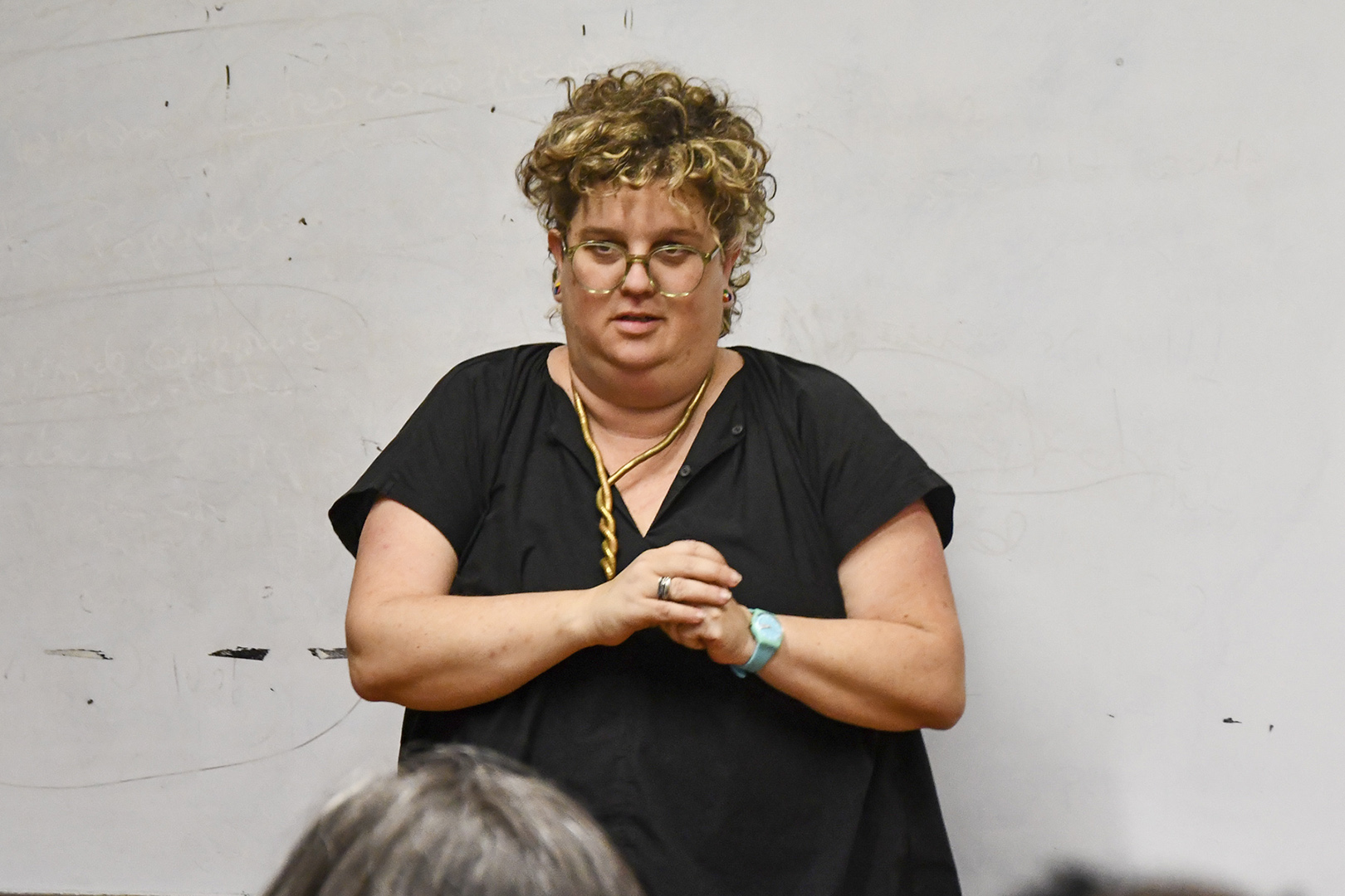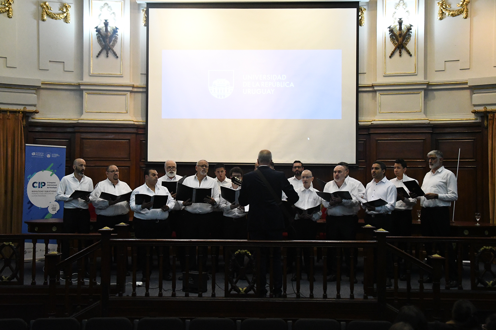 Para el cierre de la jornada las y los participantes retornaron al Paraninfo para la Conferencia central a cargo de Mary Jane Paris Spink, titulada "Culpa e responsabilidade: posições de pessoa em contextos de vulnerabilidad" y la presentación artística del Coro de Hombres Gay de Montevideo.