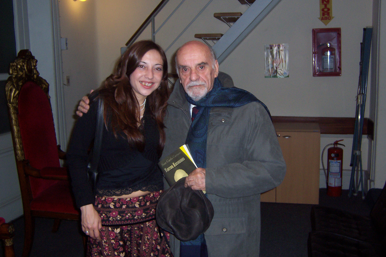 "Carrasco tuvo una relación muy cercana con el Hospital Vilardebó y desde sus inicios con la Radio Vilardevoz, proyecto que nace inspirado en la Psicología Crítica Alternativa. En esta foto, del 2004, Carrasco es entrevistado por Marco Borghi y Adhemar Seara, militantes de la vida."