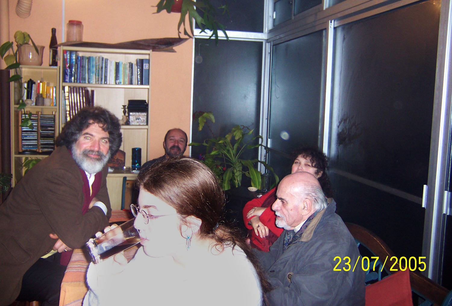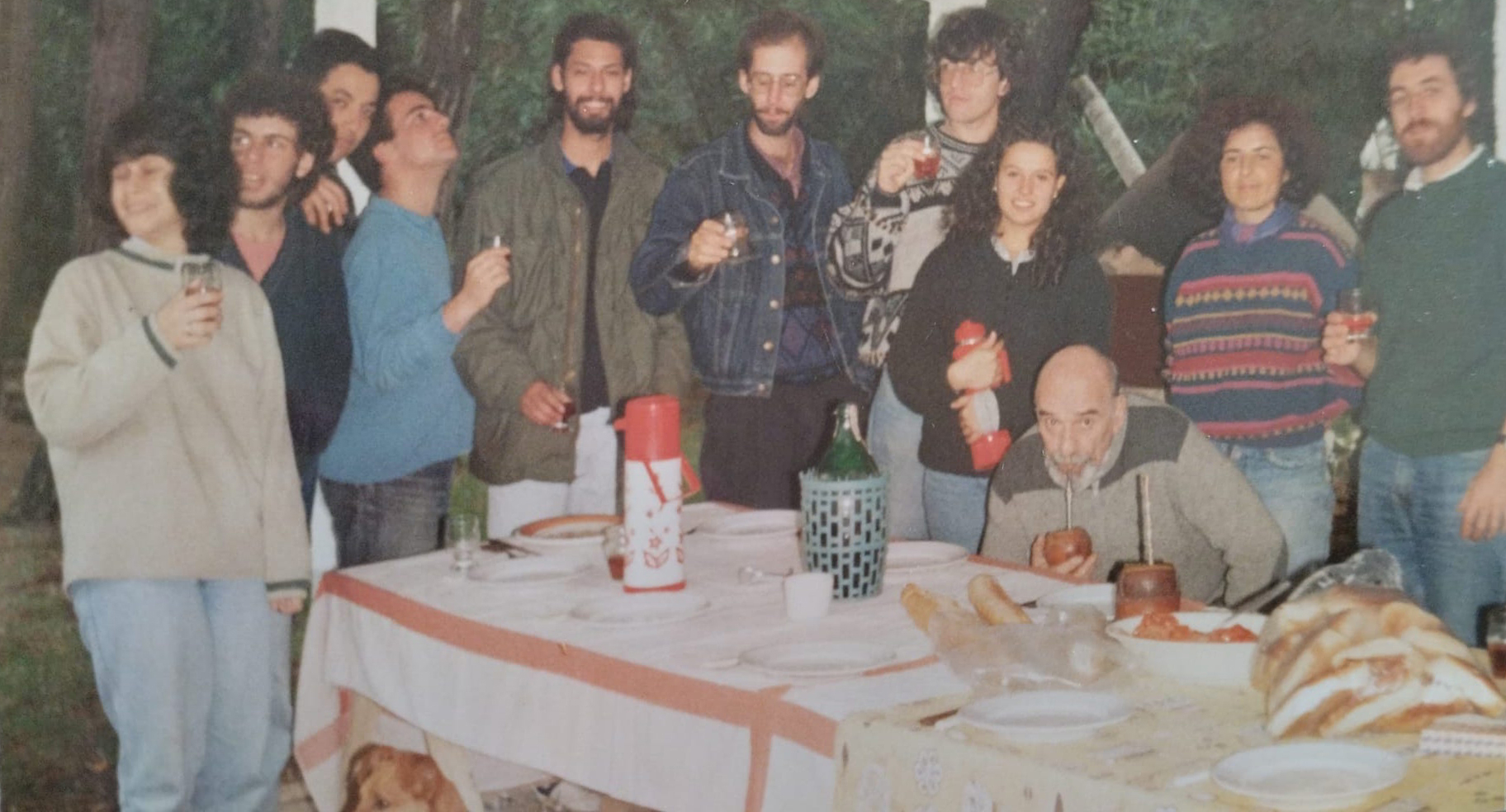 "Se trata de una reunión de festejo del área de Psicología Evolutiva, en la casa de una docente. Carrasco era un referente académico y humano permanente para el grupo. En la imagen, detrás está David Amorín, a la izquierda Jorge Schneidermann y a la derecha Gabriela Giordano."