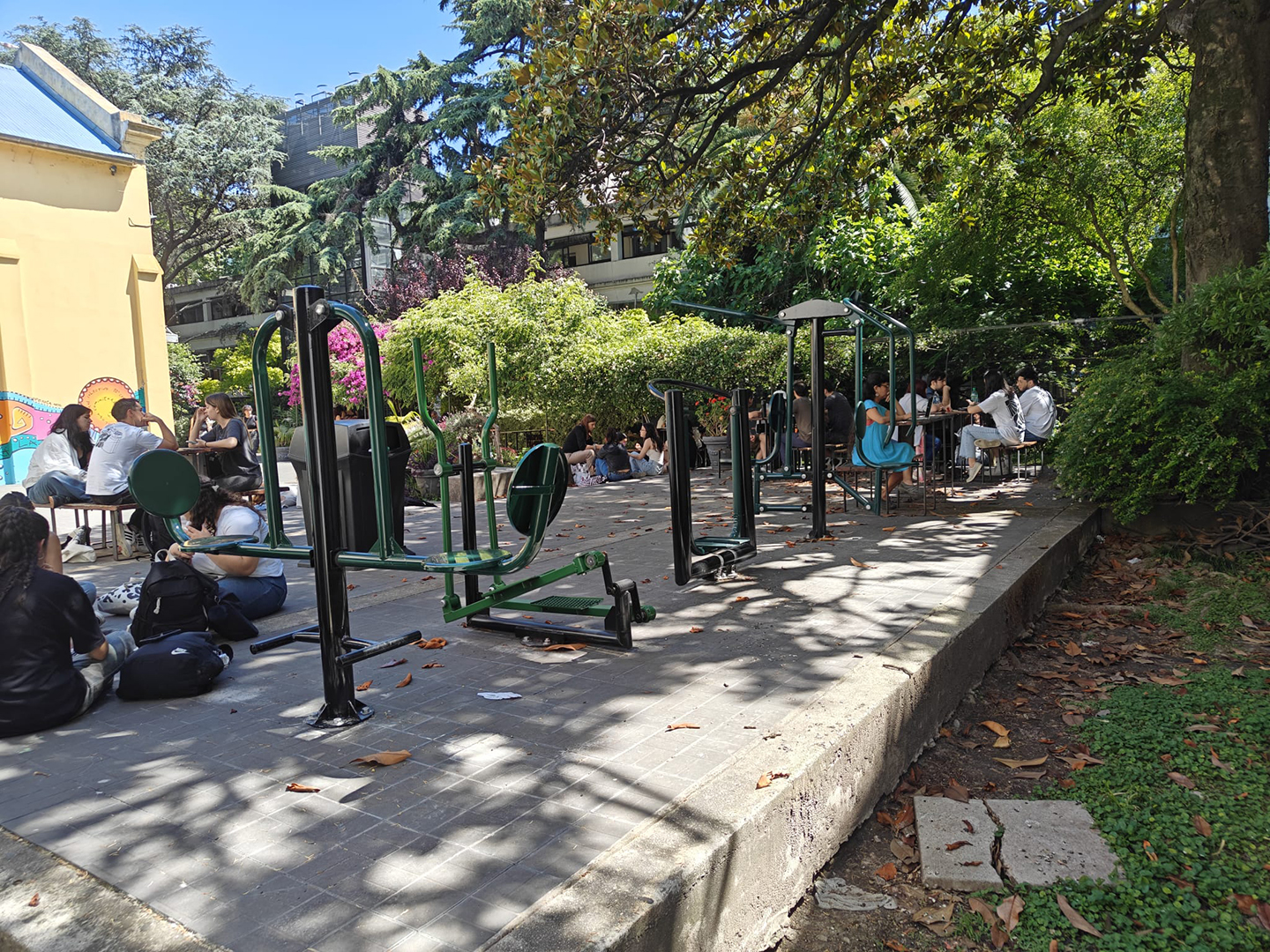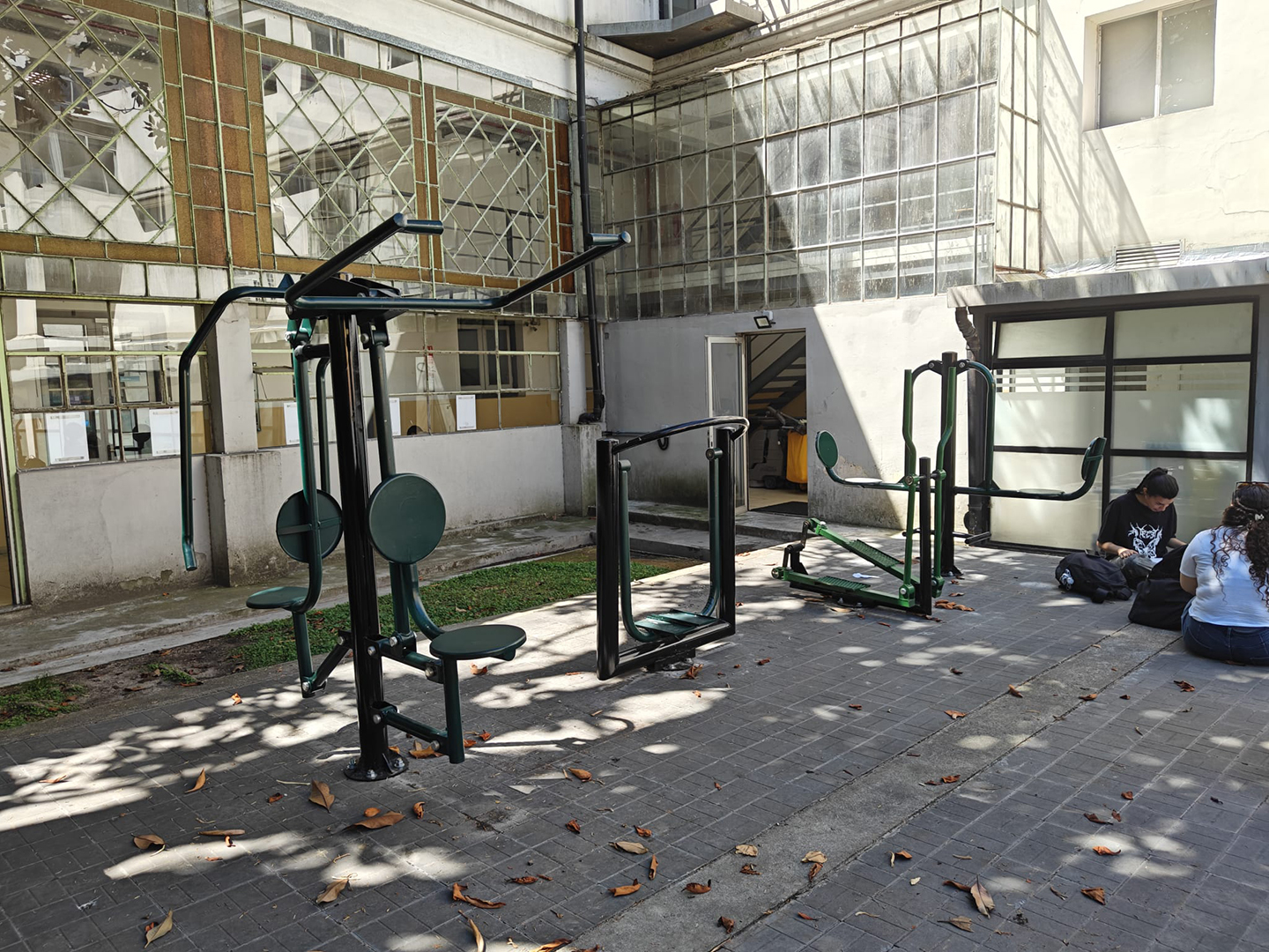 La instalación de esta estación de gimnasia refuerza el compromiso de la Facultad con el bienestar de su comunidad, promoviendo un estilo de vida más activo y saludable mediante pausas que contrarresten los efectos del sedentarismo prolongado.