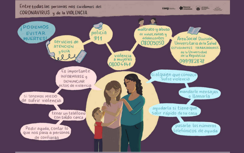 Los siguientes materiales producidos por el grupo toman como base las recomendaciones realizadas desde Bienestar Universitario y la Comisión Abierta de Equidad y Género de la Universidad de la República. La información aquí presentada pretende fortalecer los canales prevención y atención a situaciones de violencia basada en género.