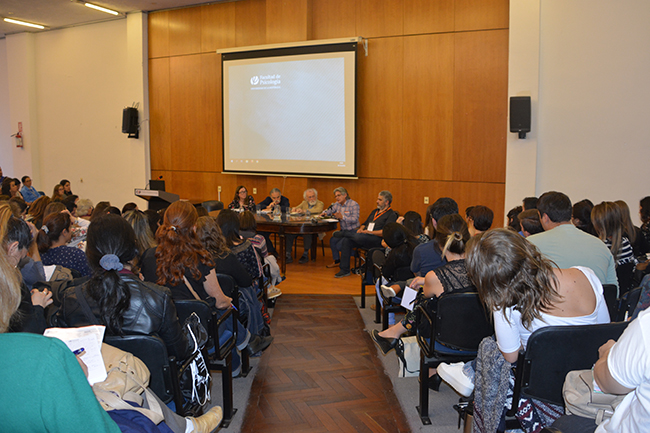 La Mesa Redonda, en el marco del Eje 1 1 del 1º Congreso Internacional de Psicología, estuvo integrada por el Dr. Enrique Saforcada de la Universidad de Buenos Aires, Dr. Ricardo Rosas de la Pontificia Universidad Católica de Chile, Psic. Víctor Giorgi del Instituto del Niño, Niña y Adolescente (IIN-OEA) en Uruguay y Dra. Analía Wald de la Universidad de Buenos Aires, Argentina.