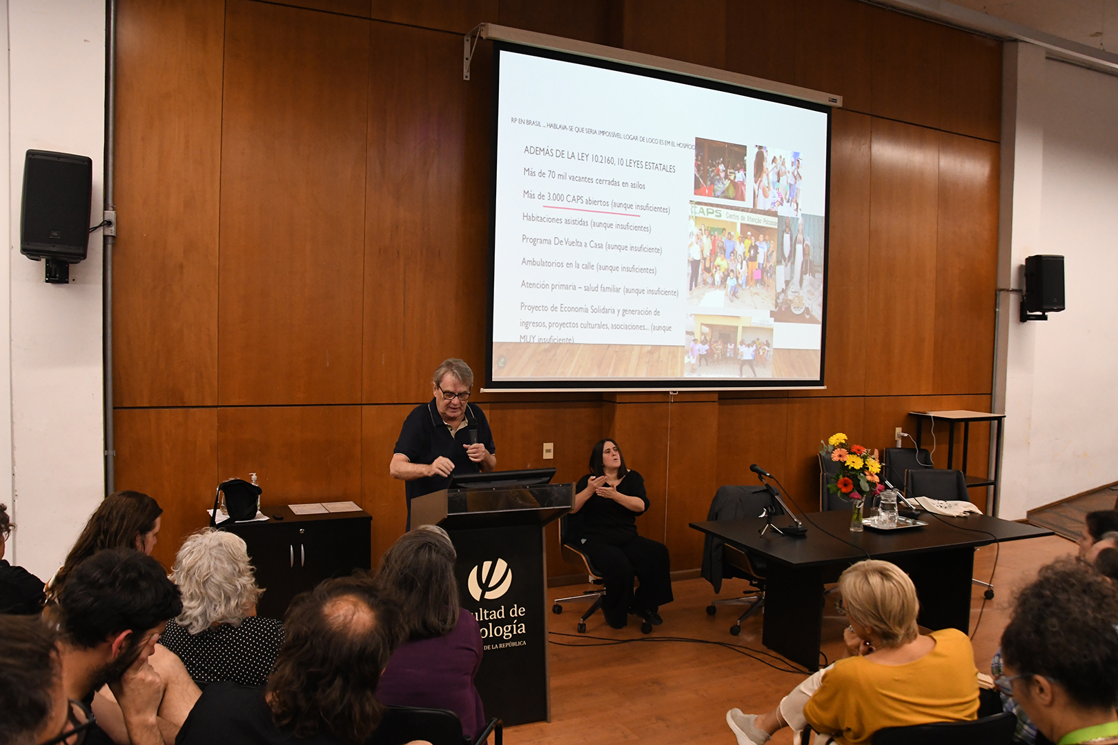 Este acto de clausura se realizó el 29 de noviembre en el Aula Magna de la Facultad de Psicología de la Universidad de la República y estuvo presentado por la docente Gabriela Etcheverry y la integrante del Comité Organizador Rossana Blanco. La instancia marcó el cierre de tres días de actividades académicas, artísticas y políticas que reunieron a más de mil participantes nacionales e internacionales. El broche final fue la conferencia de Paulo Amarante, referente central de la Reforma Psiquiátrica brasileña y figura clave en la defensa de los derechos humanos en salud mental.
