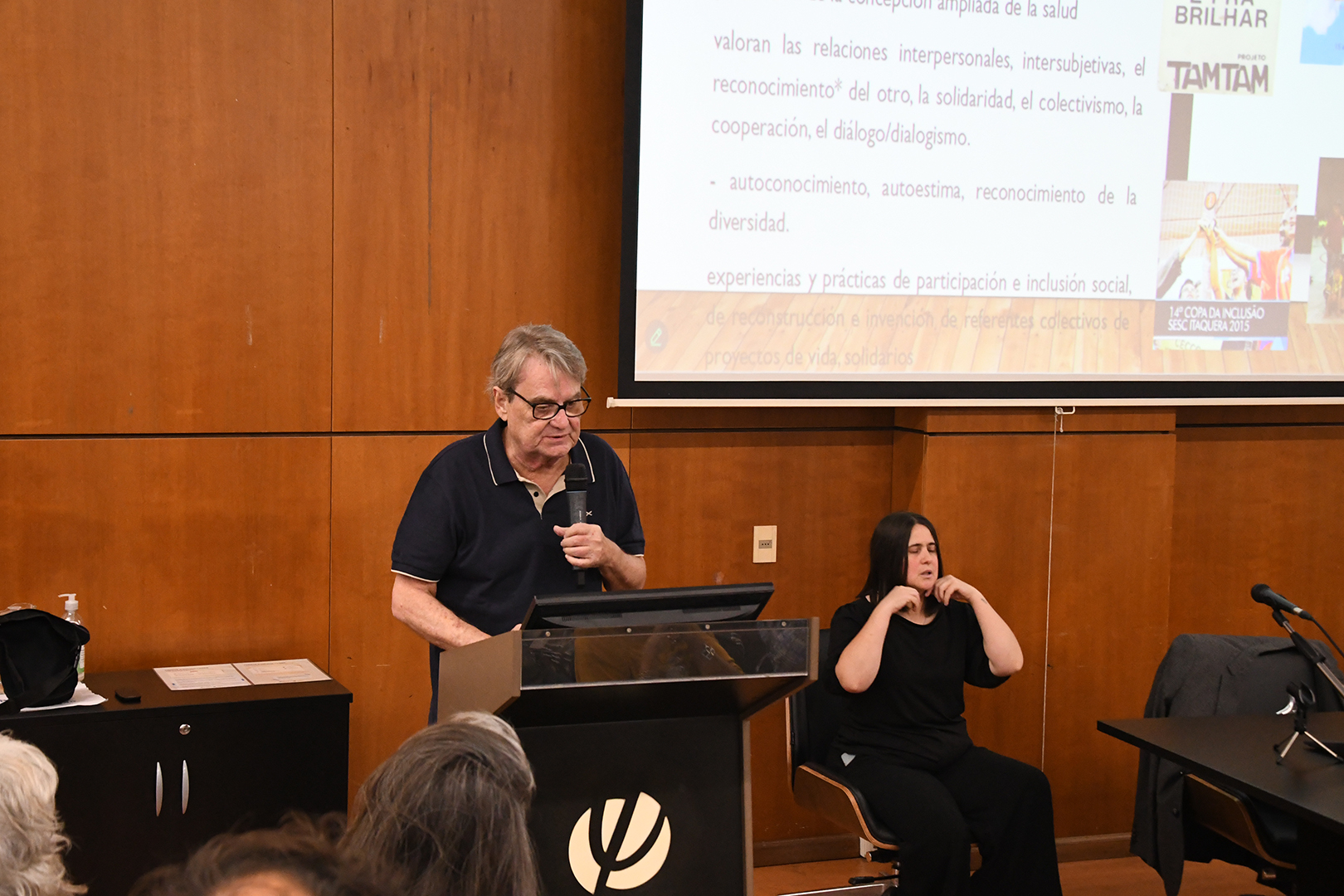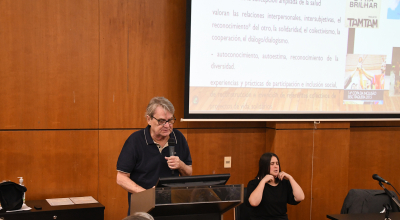 Amarante abrió su intervención con una breve autodescripción, una práctica común en Brasil, y recordó el clima difícil vivido durante la pandemia y el “pandemonio” político representado por el entonces presidente Jair Bolsonaro. Dijo que vivió ese período con pánico, especialmente porque percibió amenazas contra derechos conquistados en cuarenta años de militancia. Recordó también su participación en la creación del Sistema Único de Saúde (SUS) en 1979, fruto de un sueño colectivo de “otro mundo posible”, basado en el acceso universal, la participación social y la salud como derecho.
