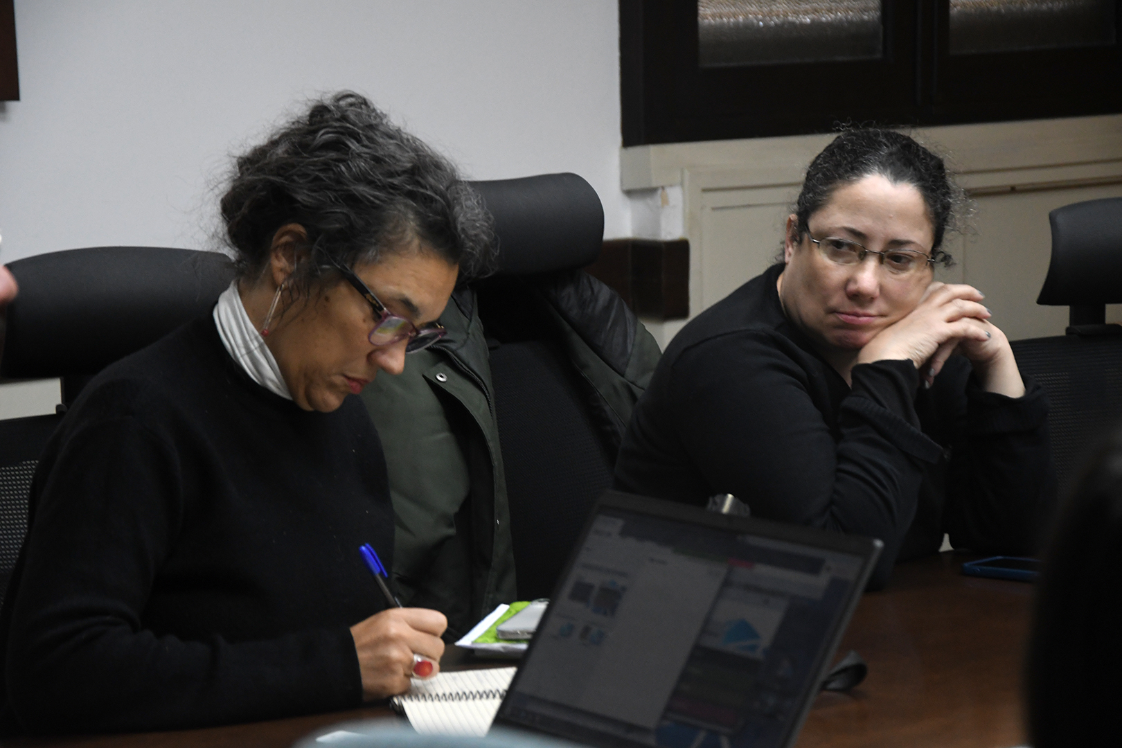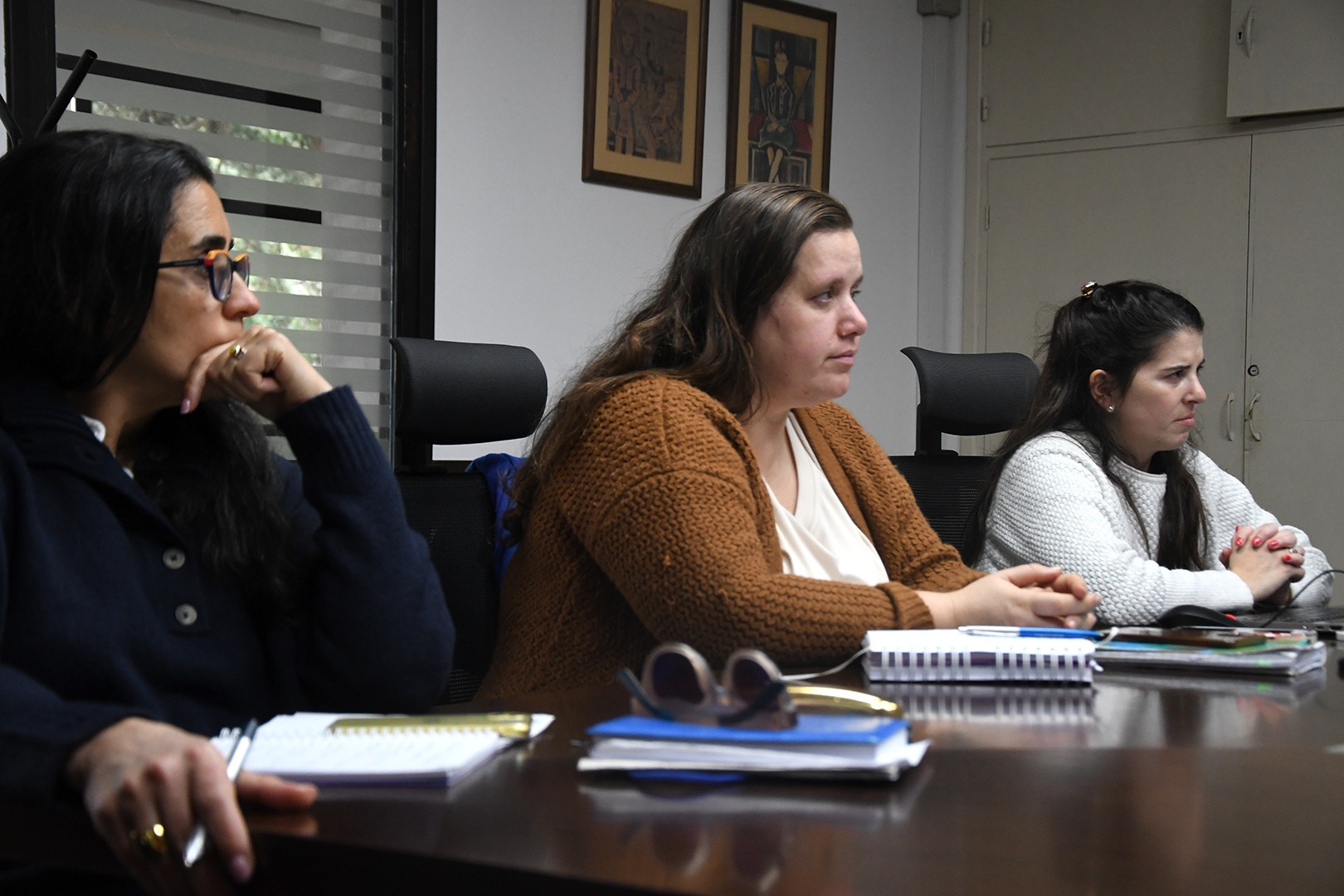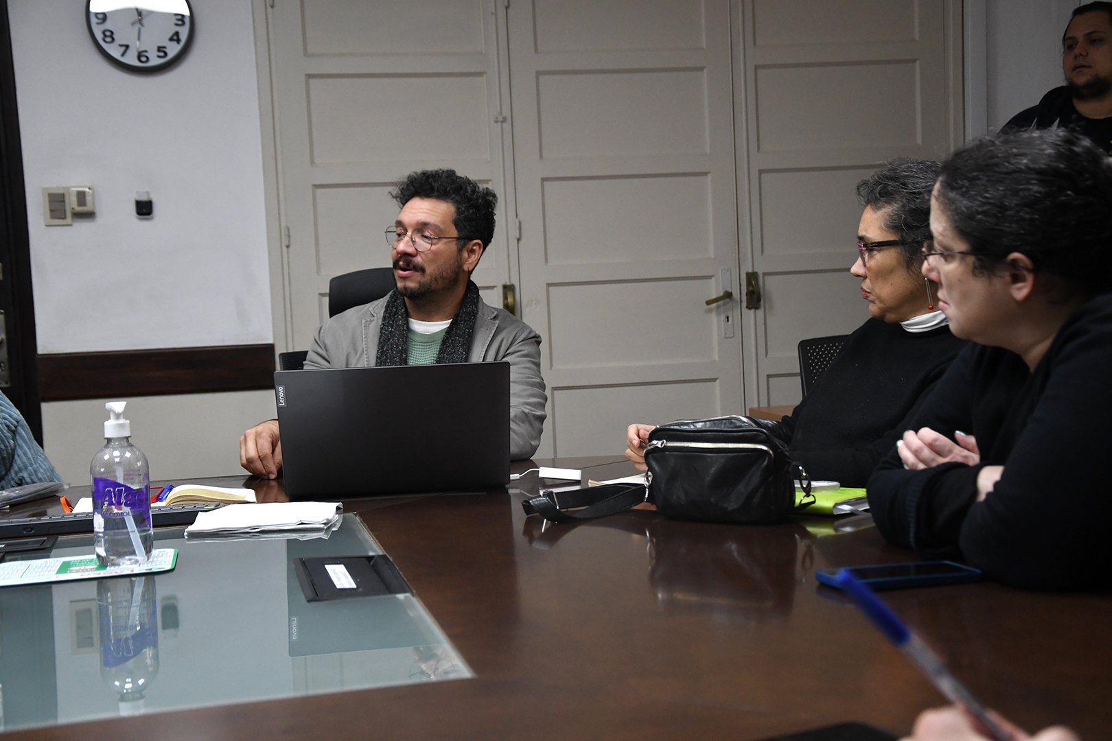 Durante el encuentro con Lemos participaron las representantes de la Comisión y Comité Cecilia Marotta, Rossana Perrone, Alejandra Akar y Jhoanna Orrego, por el orden docente; la representante de Decanato, Antonella Torelli; Natali Lorenzo, como representante del orden Estudiantes; Sebastián Correa, de la Secretaría de Cogobierno, y la referente técnica especializada de la Comisión, Gabriela Albornoz.