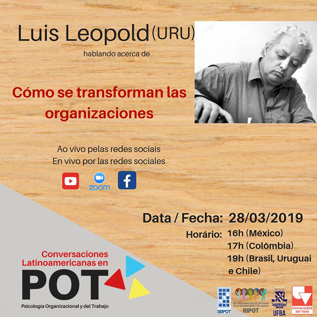 El Dr. Luis Leopold, prorrector de Gestión Administrativa en Udelar y Profesor Titular del Instituto de Psicología Social de la Facultad de Psicología, participó como invitado en la 5º sesión del ciclo "Conversaciones Latinoamericanas en POT" (Psicología Organizacional y del Trabajo) el pasado 28 de marzo.