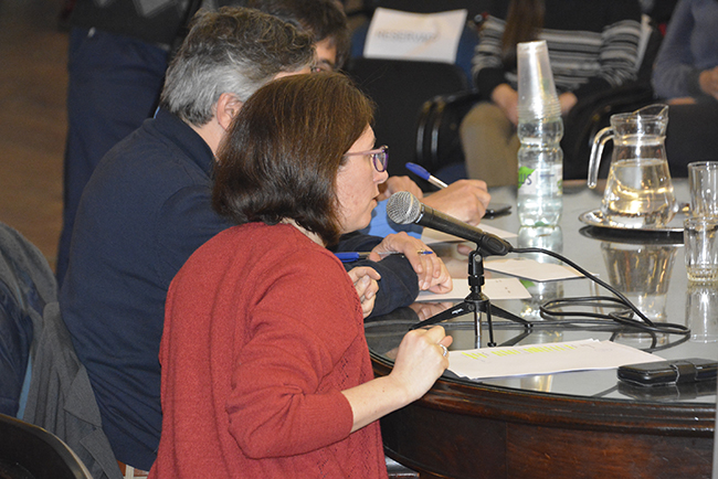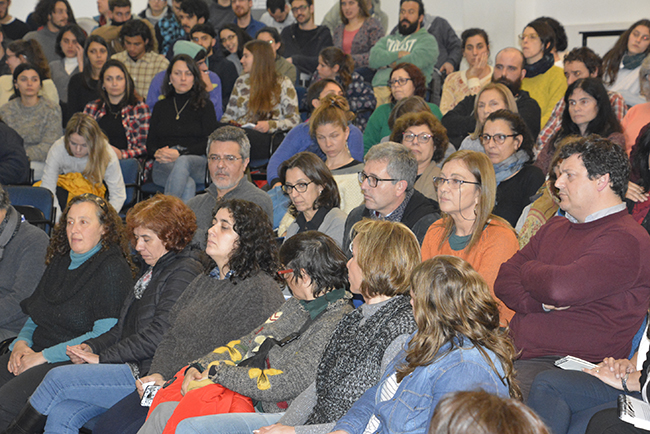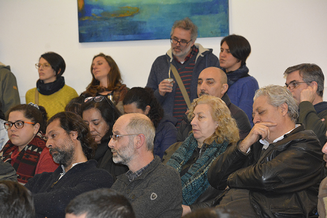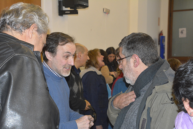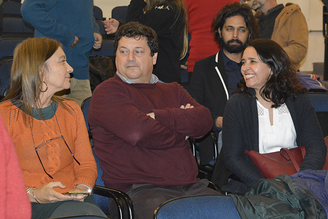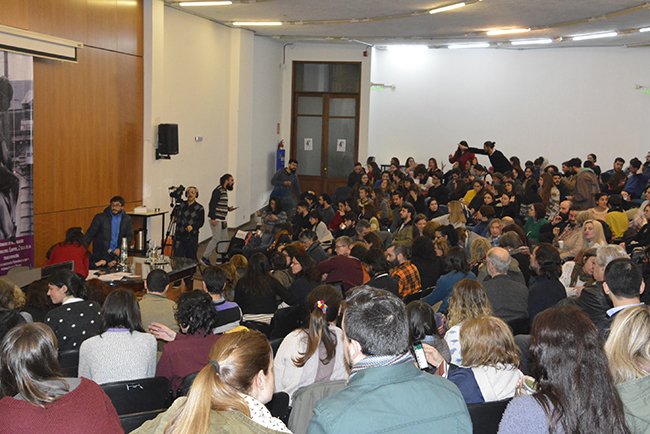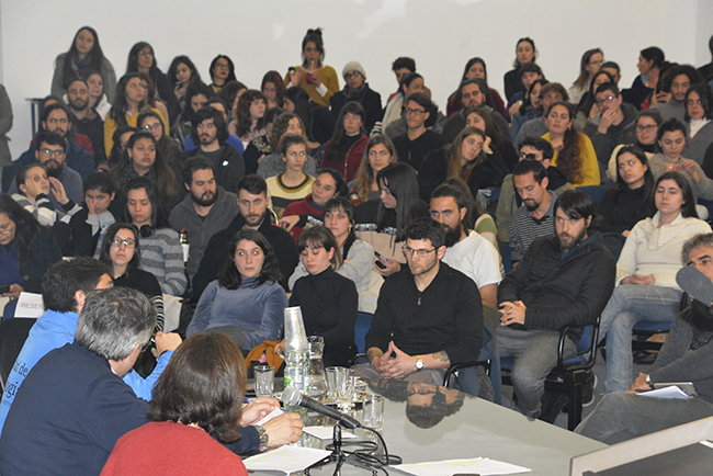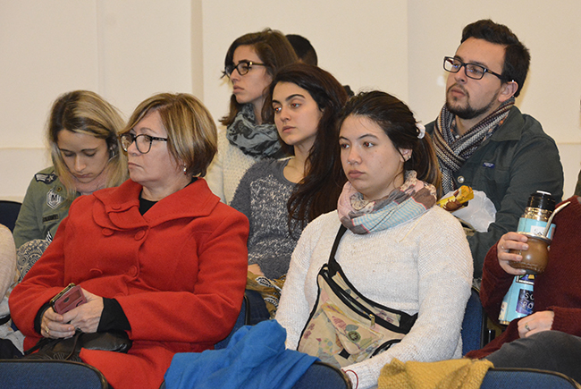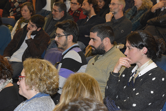 Luego de unos minutos de espera, los candidatos se hicieron presentes en el Aula y el profesor Irrazábal tomó la palabra para agradecer a las y los presentes.