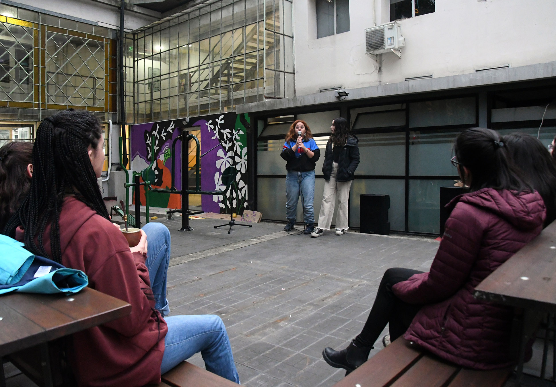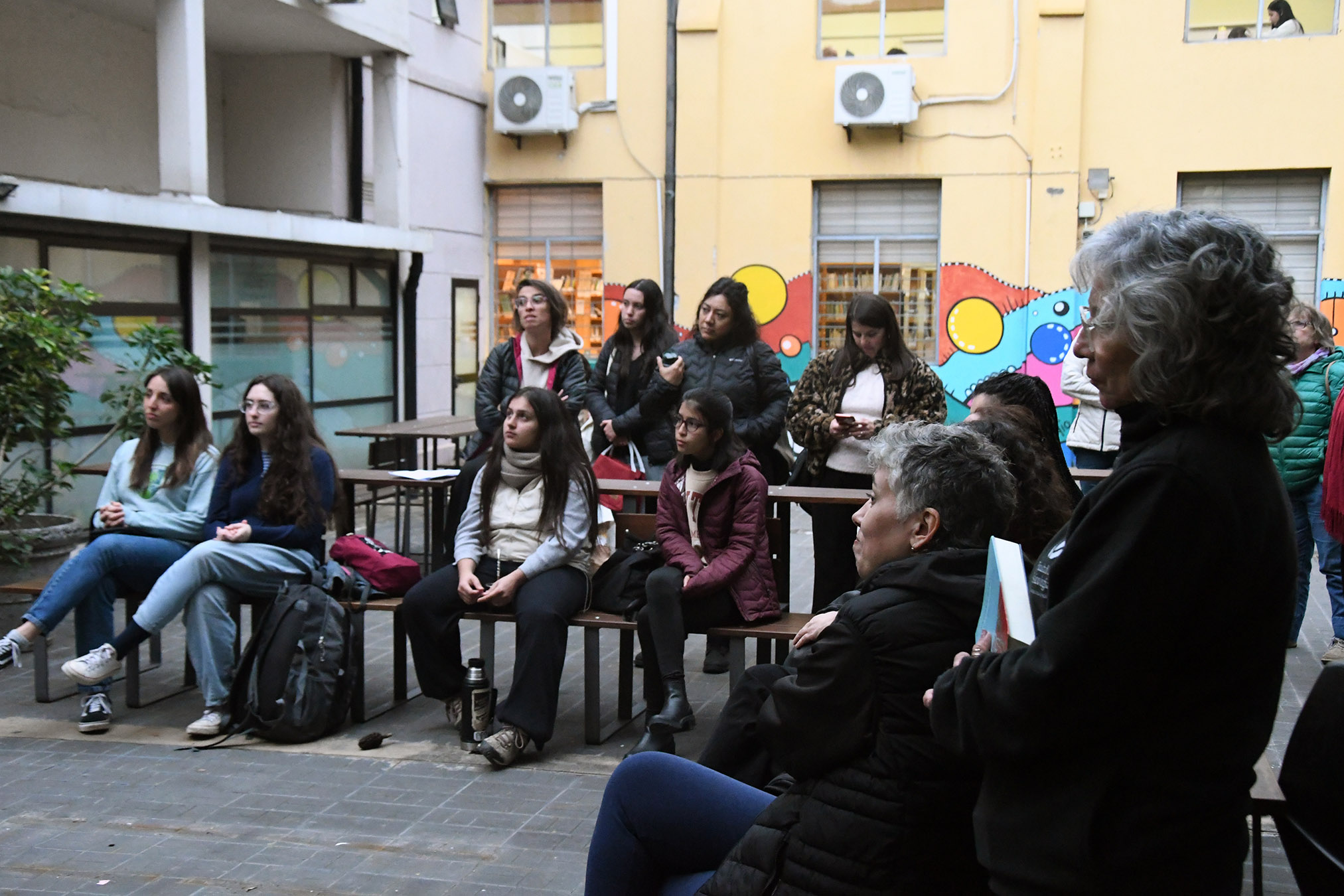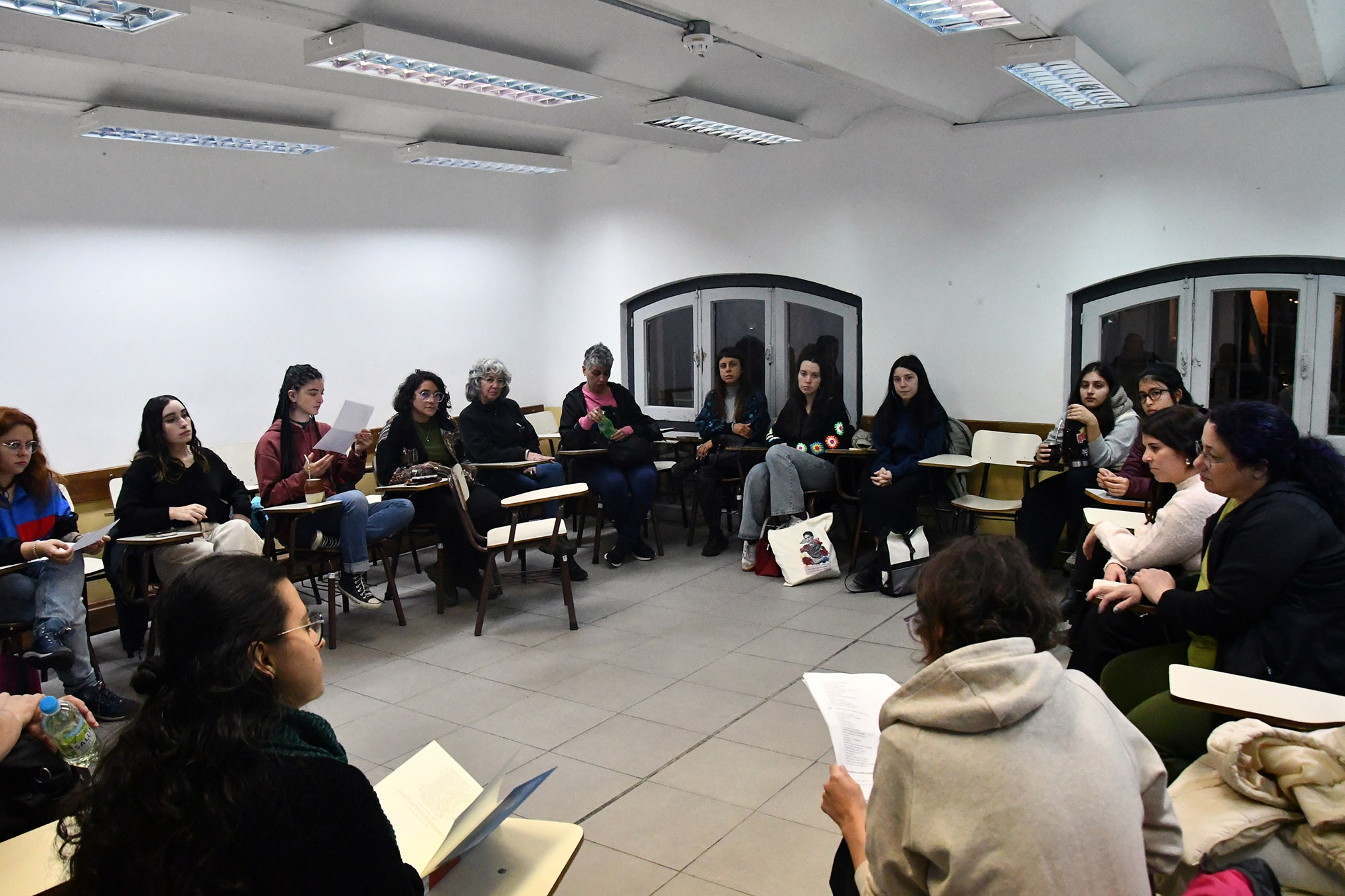 Con las primeras gotas de lluvia la segunda mitad de la actividad se trasladó al salón 8. Sentadas en una ronda, leyeron poemas propios y prestados que abordaban las temáticas convocantes.