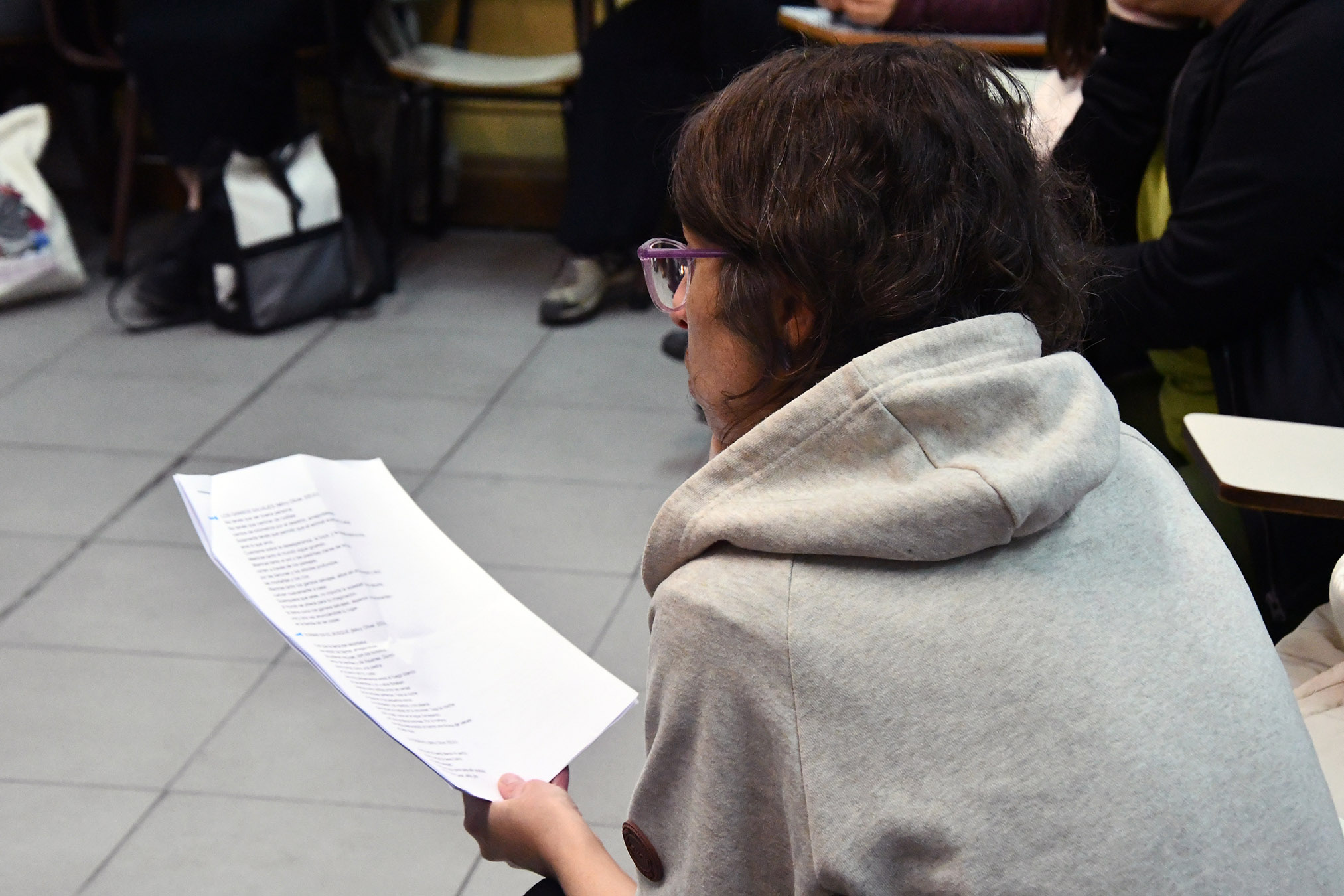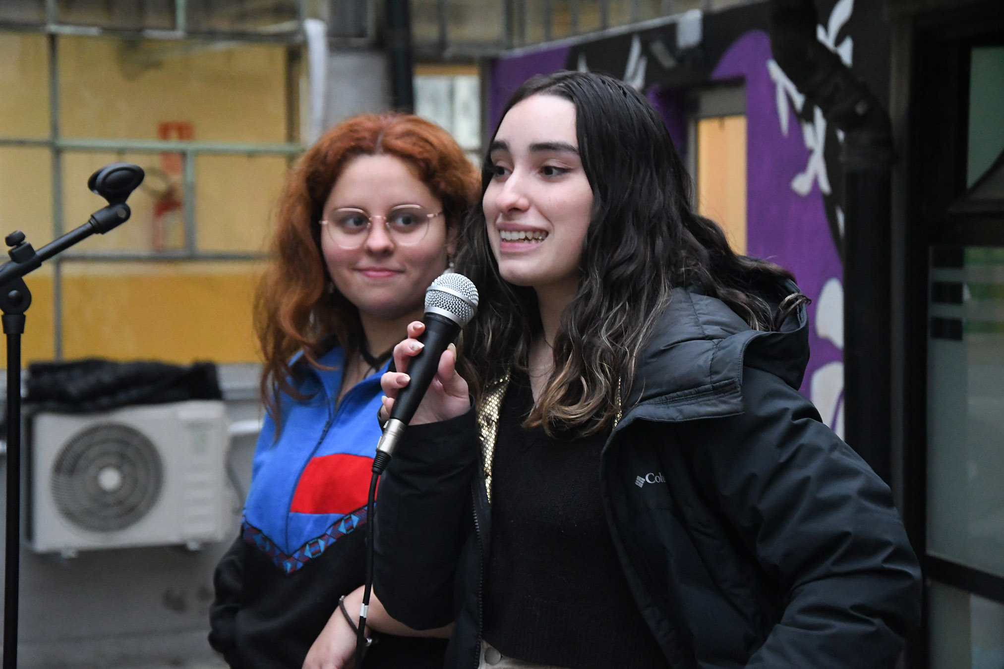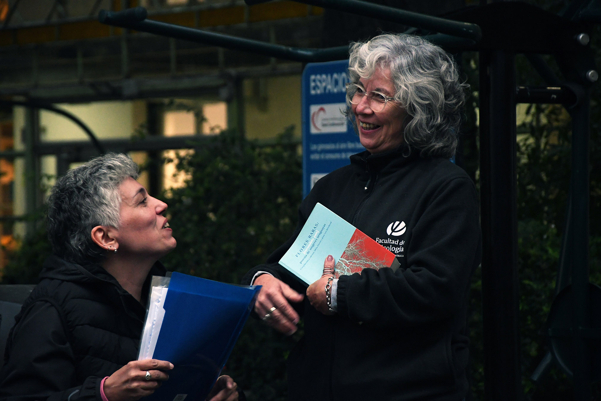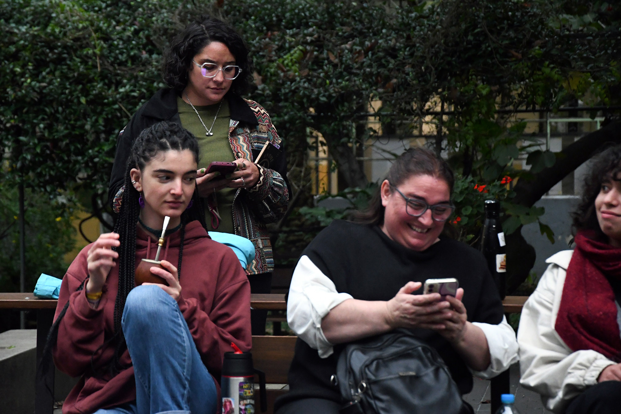 Con las primeras gotas de lluvia la segunda mitad de la actividad se trasladó al salón 8. Sentadas en una ronda, leyeron poemas propios y prestados que abordaban las temáticas convocantes.