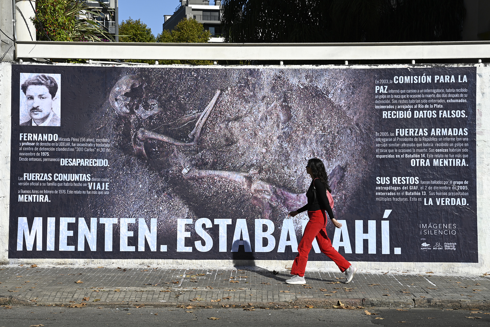 Fotografías originales para murales: Miranda (Alejandro Arigón). Gomensoro (Archivo Semanario Mate Amargo). Arigón (Carlos Lebrato). Blanco (Inés Guimaraens). Ubagesner, Castro, Sanjurjo y Bleier (Imágenes del Silencio).