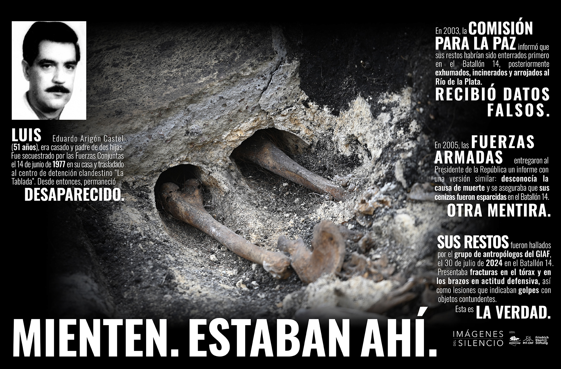 La iniciativa pone foco en la búsqueda y hallazgo de los restos de los desaparecidos, y en la luz sobre la verdad que esos restos van develando gracias al trabajo realizado por los antropólogos del Grupo de Investigación en Antropología Forense (GIAF).