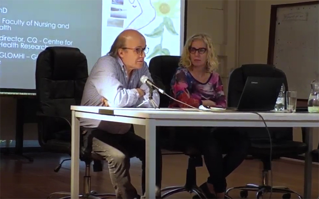 Denise Gastaldo, Prof. de la Facultad de Enfermería de la Universidad de Toronto, inició su conferencia con una introducción a los mapas corporales narrados, una metodología que desarrolló junto a la Dra. Lilian Magalhaes y que utilizó en su investigación con trabajadores latinoamericanos indocumentados en la ciudad de Toronto, Canadá.