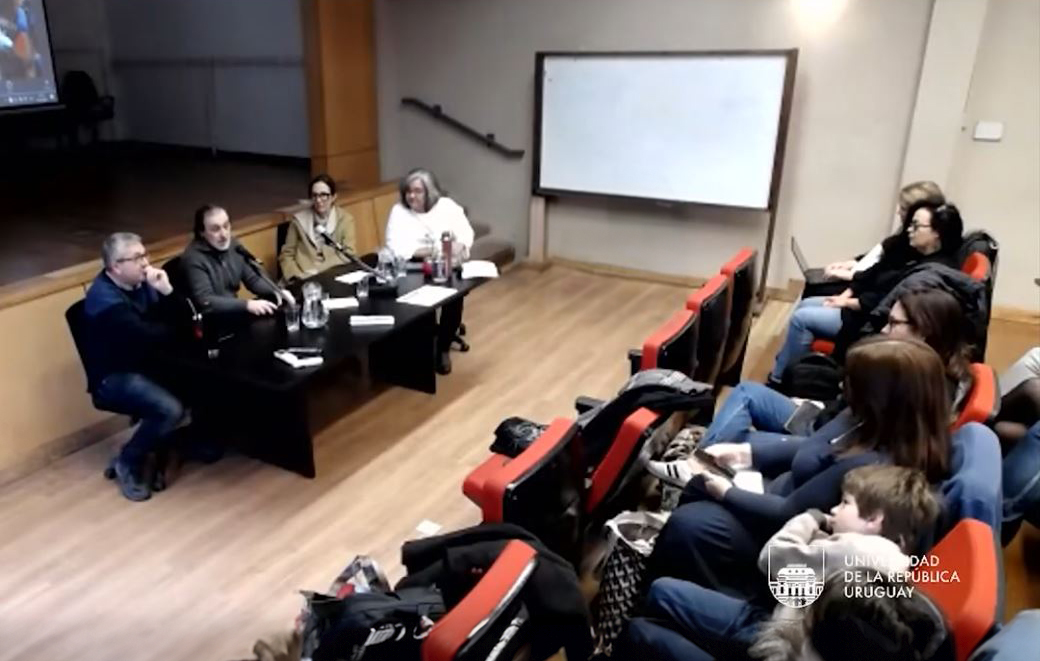 La jornada inició con una mesa de apertura en la que intervinieron el decano de la Facultad, Enrico Irrazábal; la directora del Instituto de Psicología Social, Silvia Franco; el coordinador del Núcleo Interdisciplinario de Estudios sobre Vejez y Envejecimiento (NIEVE), Fernando Berriel; y la directora académica de la diplomatura, María Carbajal.