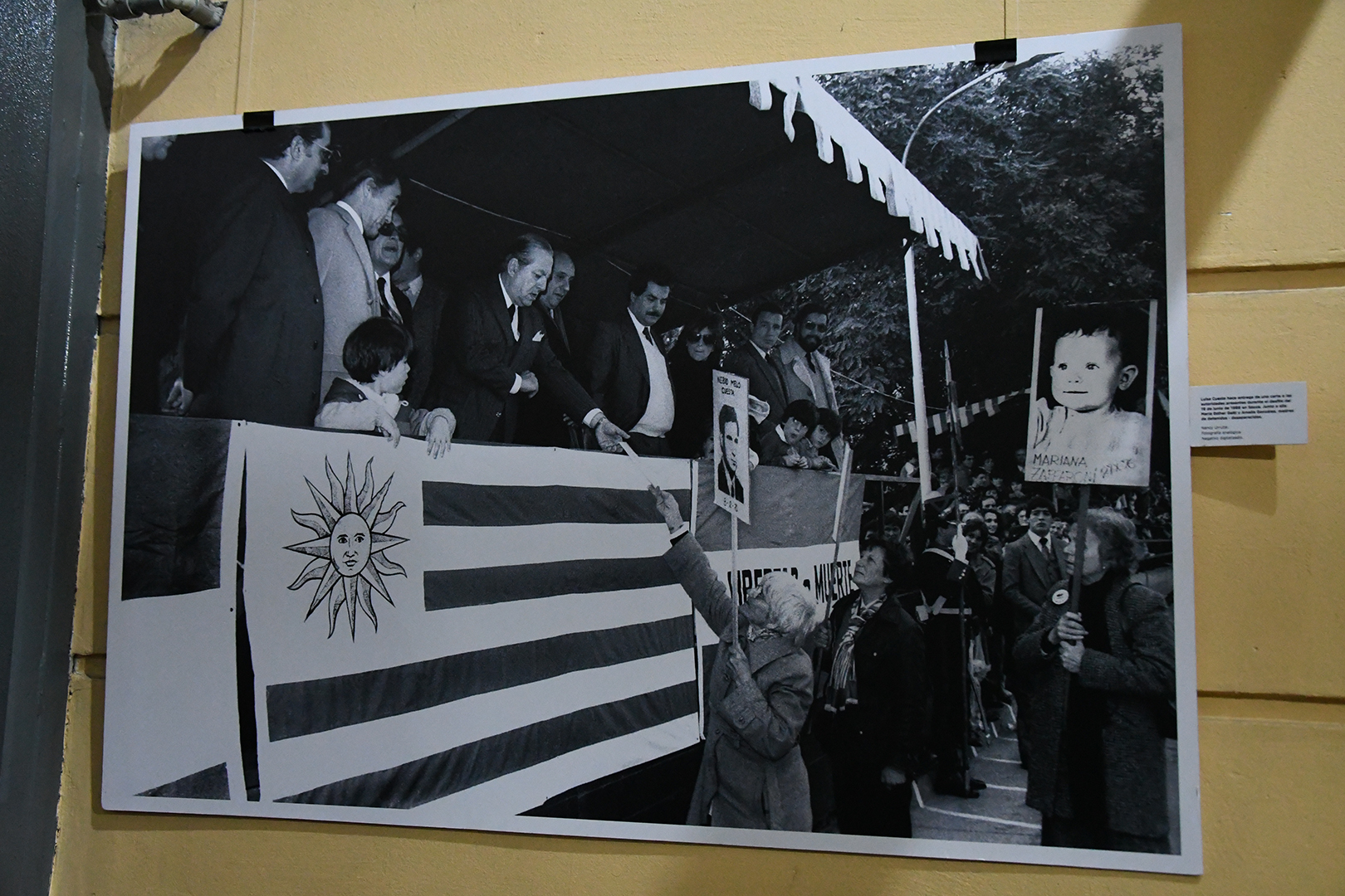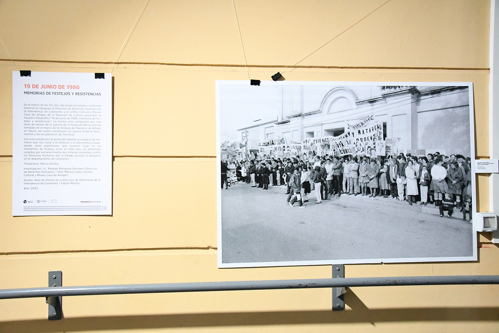 Además de la presencia del decano de la Facultad, Enrico Irrazábal, la actividad se centró en la participación de la reportera gráfica y autora de las fotografías de la muestra, Nancy Urrutia. En esta ocasión, Urrutia presentó una serie de 9 fotografías recuperadas y mejoradas que registran parte de las demandas impulsadas en la búsqueda de la resolución de los crímenes de lesa humanidad cometidos por el Estado uruguayo durante los festejos del natalicio de José Artigas, ocurrido en la localidad de Sauce (Canelones) el 19 de junio de 1986. También estuvieron presentes representantes de la dirección de Derechos Humanos y del Centro Cultural Casa de Artigas de la Intendencia de Canelones.