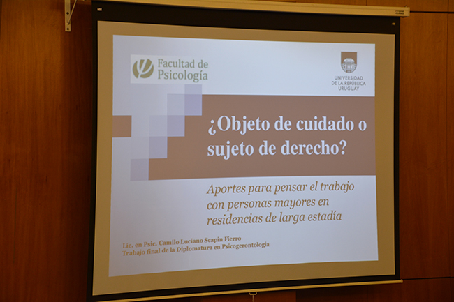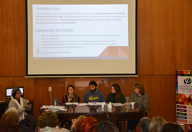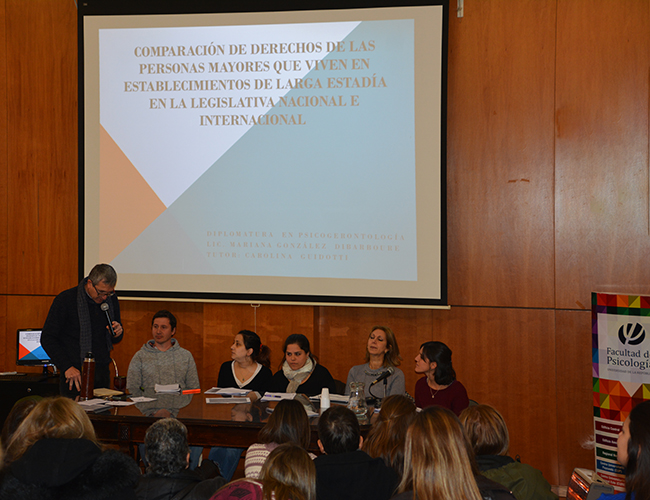 El miércoles 1° de agosto de 2018 se realizó en el Aula Magna de la Facultad de Psicología de la Universidad de la República la "Primera Jornada de la Diplomatura en Psicogerontología y la Especialización en Evaluación Psicológica", con el objetivo de presentar los trabajos finales de las y los estudiantes de ambos posgrados.