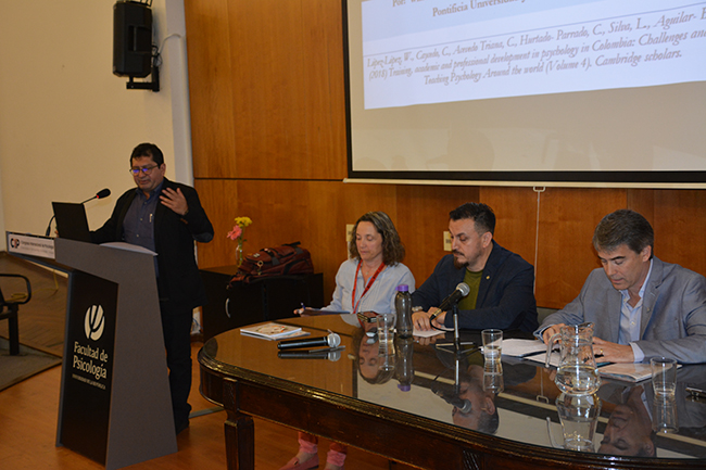 en el 1º Congreso Internacional de Psicología, el Lic. Xavier Oñativia (Universidad Nacional de La Plata, Argentina), Dr. Juan Carlos Godoy (Universidad Nacional Córdoba, Argentina) y el Dr. Wilson López López (Pontificia Universidad Javeriana, Colombia) intercambiaron sobre los desafíos de la integralidad en la producción de conocimientos y para la formación en psicología, las competencias profesionales y académicas que demandan a