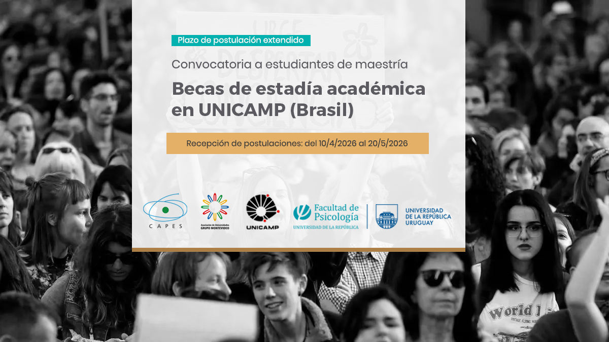 El proyecto CAPES-AUGM: “Discursos/ efectos de autoridad y resistencia: nuevas derechas y movimientos feministas en Brasil, Uruguay y Argentina”, convoca maestrandos para usufructo de 1 (una) beca de maestría para realizar estadía académica de duración de entre 4 y 6 meses en el Instituto de Estudos da Linguagem (IEL) de la Universidade Estadual de Campinas (UNICAMP), San Pablo (SP), Brasil. Los/as postulantes deberán estar cursando un programa de maestría en Udelar, y residir en Uruguay. La estadía académica en Brasil, de 4 a 6 meses, deberá iniciarse en agosto – setiembre del año 2026, preferencialmente cursando regularmente el segundo semestre.