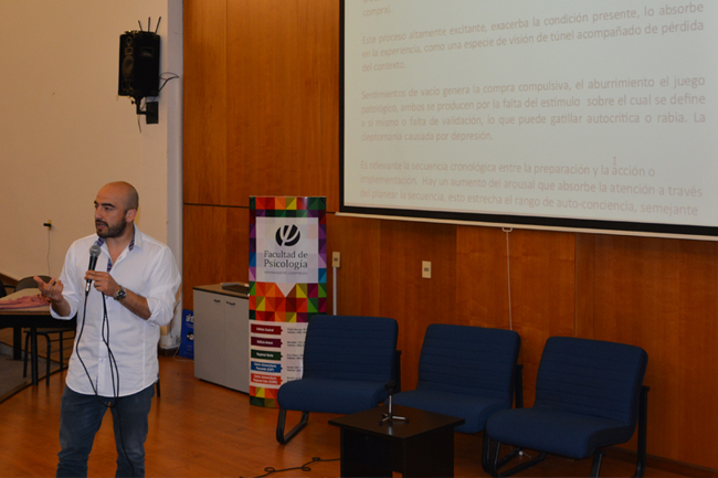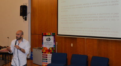 El Dr. Adasme, quien se desempeña y cuenta con una especialización en Psicología Clínica Cognitiva Constructivista de adultos, dictó la conferencia en noviembre pasado en el Aula Magna de la Facultad de Psicología. Su exposición, como señaló al inicio de la instancia, la trabajó desde una construcción fenomenológica de la experiencia humana.