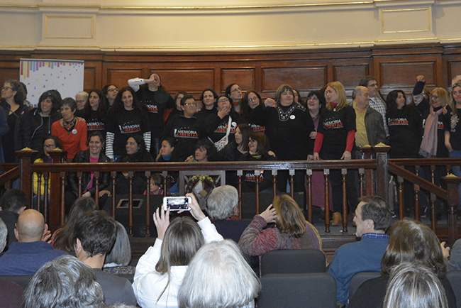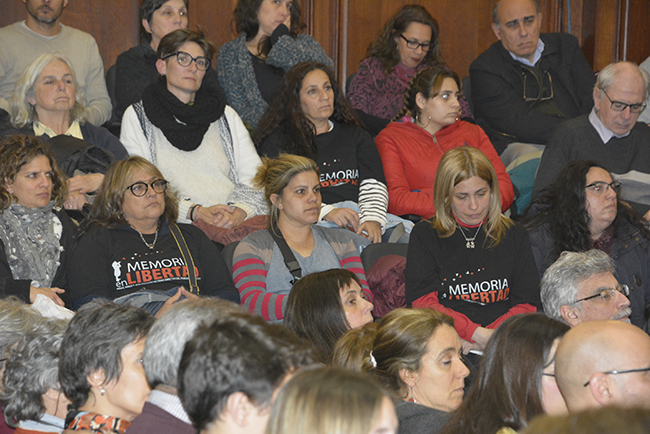 Marisa Bursak, integrante del colectivo Memorias en libertad dio cierre a la actividad citando, en primer lugar, una frase “el amor es una responsabilidad” de Eduardo Bleier, y luego agregó: “la vida es porfiada y hoy nos trae al mismo lugar, el mismo día, a la vida y a la muerte, hermanadas bajo el abrazo de la verdad y la justicia”. A continuación, leyó la proclama del Colectivo.