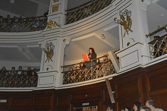 Por su parte, la Pro Rectora de Extensión, Profesora Agregada Mag. Mariana González Guyer, señaló que el reconocimiento allí celebrado marca un hito en la sociedad uruguaya. Destacó la labor del colectivo “Memorias en libertad” por la realización de esta actividad, así como el proceso para llegar hasta dicha instancia, iniciado en el año 2008, y la importancia de que dicho proceso se construyera con el apoyo de la Udelar y su esencial importancia para toda la sociedad.
