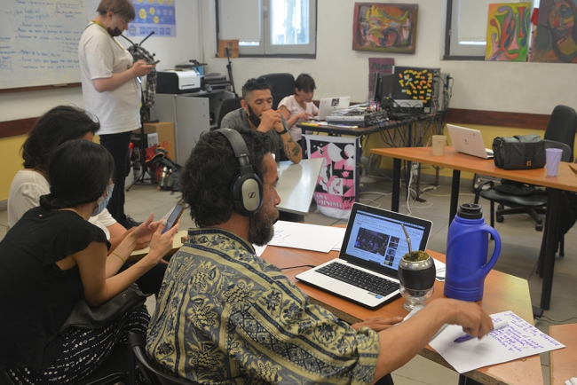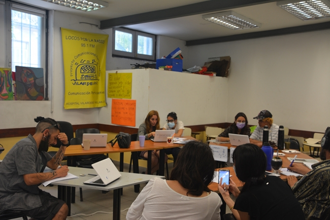 Así, en febrero del 2021 se presentó un pedido a #PsicoUdelar para que se habilite el préstamo de un salón para poder continuar con el proyecto y las actividades de la radio, lo que implicó trazar una dinámica de trabajo con asistentes académicos, personal de vigilancia y de limpieza de la Facultad. Las actividades pasaron a tener lugar en el salón 7 y en el patio. El colectivo, por su parte, estableció un aforo para continuar con las transmisiones adecuándose a las medidas protocolares sanitarias.