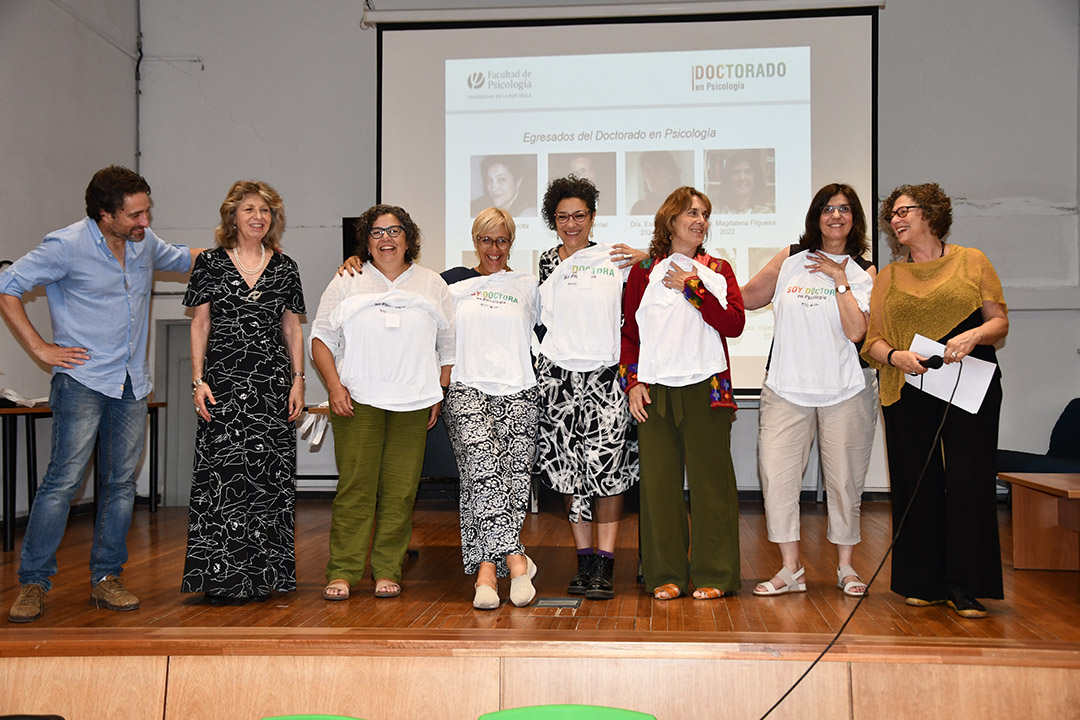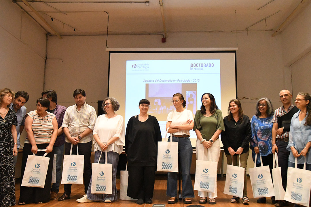 Se realizó un reconocimiento a las nueve personas que egresan del Doctorado en Psicología: Dra. Cecilia Marotta (Cohorte 2015); Dr. Fernando Berriel (Cohorte 2015); Dra. Esther Haydée; Angeriz Pampin (Cohorte 2015); Dra. Ana Luz Protesoni (Cohorte 2016); Dra. Claudia Lema Gleizer (Cohorte 2015); Dr. Diego Silva Balerio (Cohorte 2016); Dra. Magdalena Filgueira Emeric (Cohorte 2015); Dra. Valeria Ramos (Cohorte 2015); Dra. Gabriela Etcheverry (Cohorte 2016).
