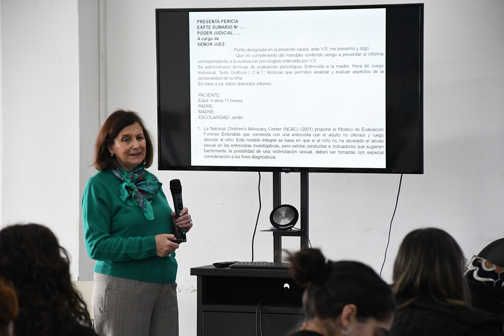 Durante el curso se mostró la relevancia que adquieren las técnicas de evaluación psicológica, en especial las técnicas proyectivas lúdicas, gráficas y de apercepción. Se trabajó con casos clínicos para ilustrar el proceso psicodiagnóstico y la elaboración del informe psicológico destinado a la instancia judicial. Finalmente, se destacaron las condiciones que debía reunir un profesional de la psicología para asistir adecuadamente a niños, niñas y adolescentes víctimas de abuso sexual.