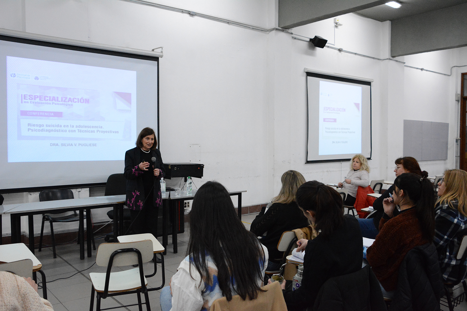 La presencia de Pugliese también permitió la realización de la conferencia “Riesgo suicida en la adolescencia. Psicodiagnóstico con técnicas proyectivas”, una actividad abierta a todo público que puso de relieve la relevancia del suicidio en la adolescencia, identificado como la tercera causa de muerte por causas externas entre los 15 y 24 años (OPS, 2022), y que constituye un fenómeno prevenible.