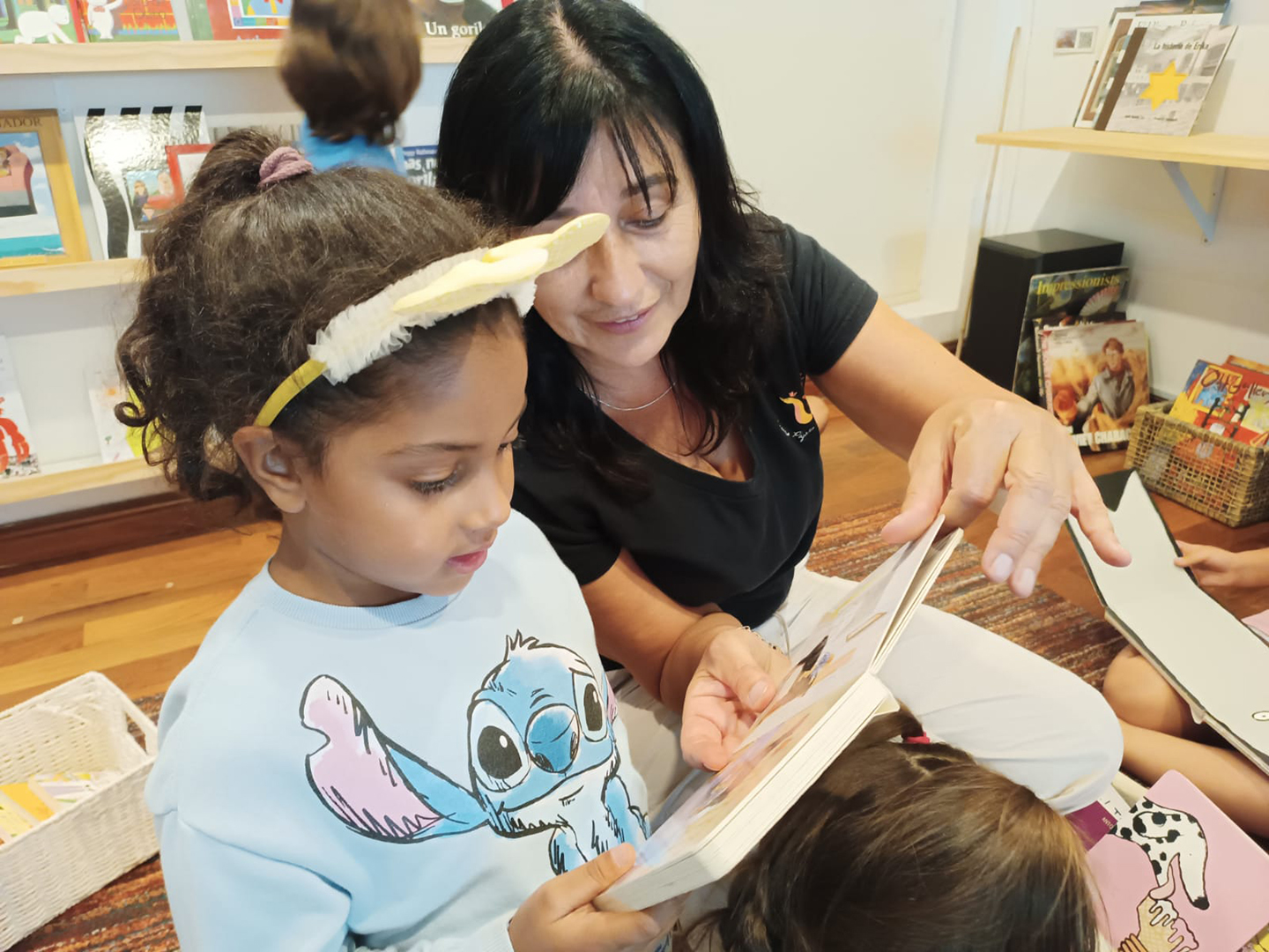 Como parte de la propuesta para esta edición, se llevó a cabo la primera salida didáctico-recreativa a Pájaro de Fuego, un espacio de literatura dirigido a las infancias y a la comunidad educativa. En esta oportunidad, las niñas y los niños participaron en el taller “Mirá la luna”, coordinado por Magdalena Dos Santos, tallerista de música del espacio, y Karina Martínez, bibliotecóloga de la Facultad de Psicología; ambas integrantes del equipo de Pájaro de Fuego. La salida fue una instancia de encuentro enriquecedora para niñas, niños, equipo docente y estudiantes, y se realizó sin costo para las familias.